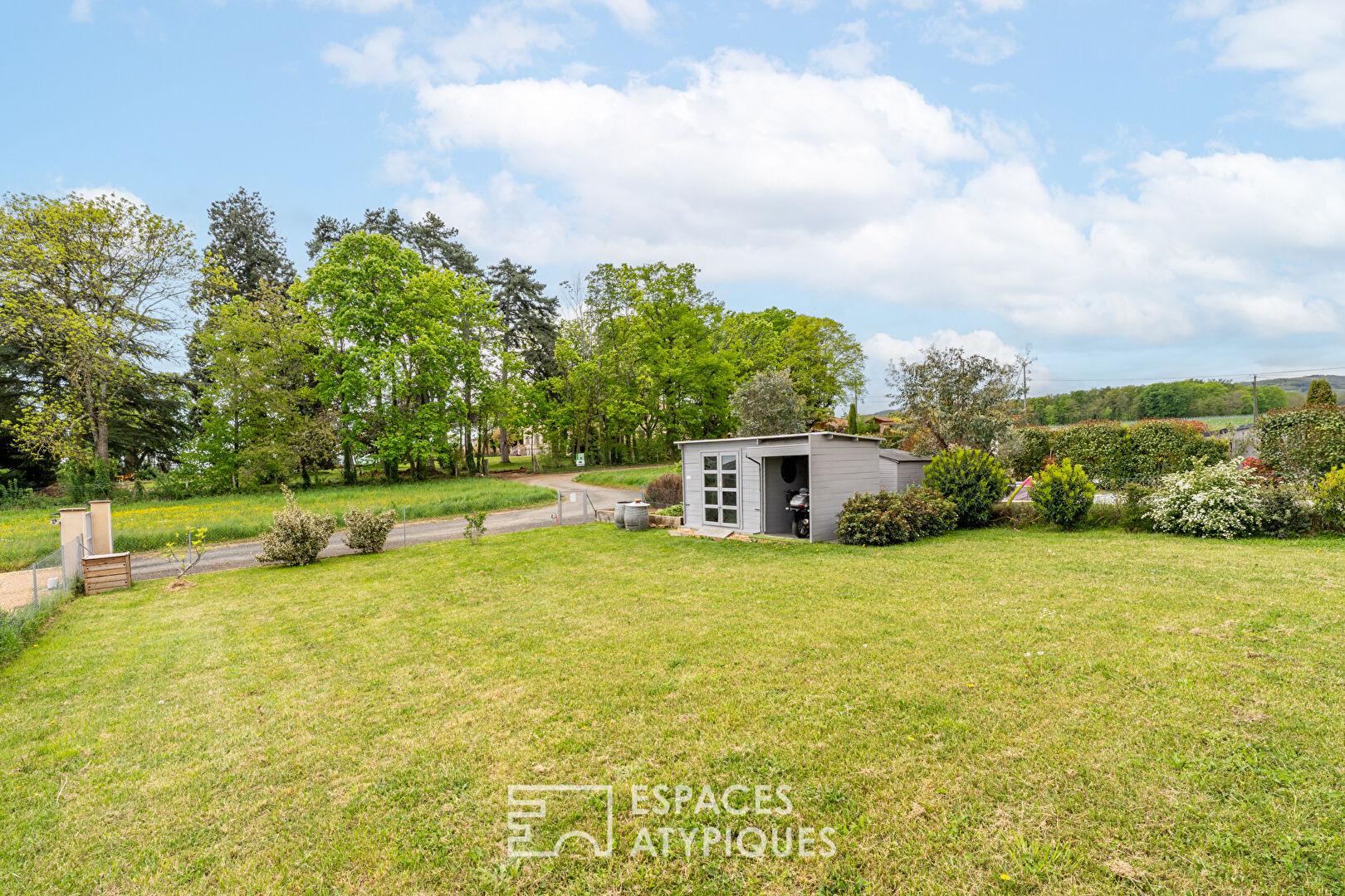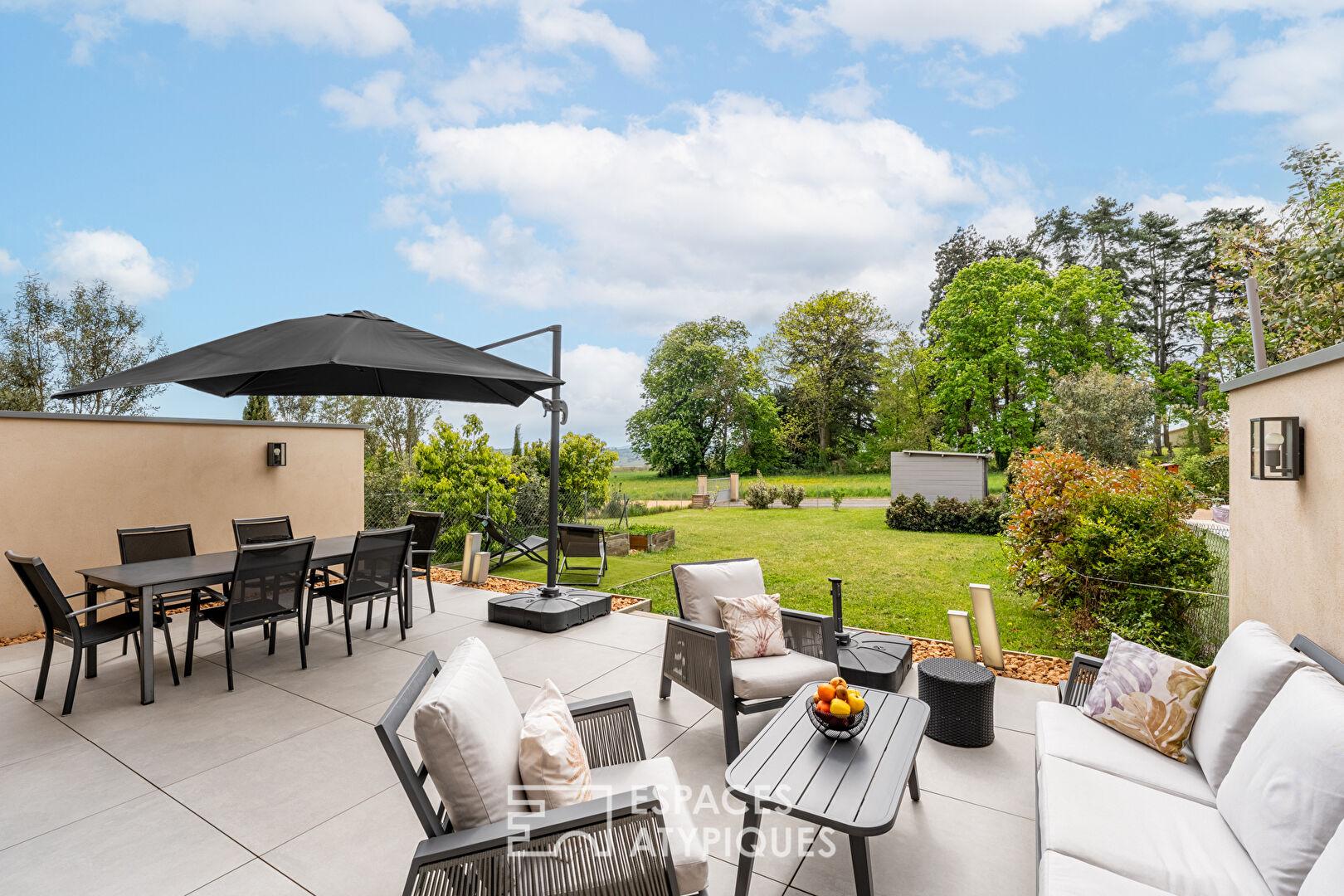 Dans le prolongement, le jardin de 425m2 exposé SUD peut accueillir une piscine, idéal pour profiter des journées ensoleillées.