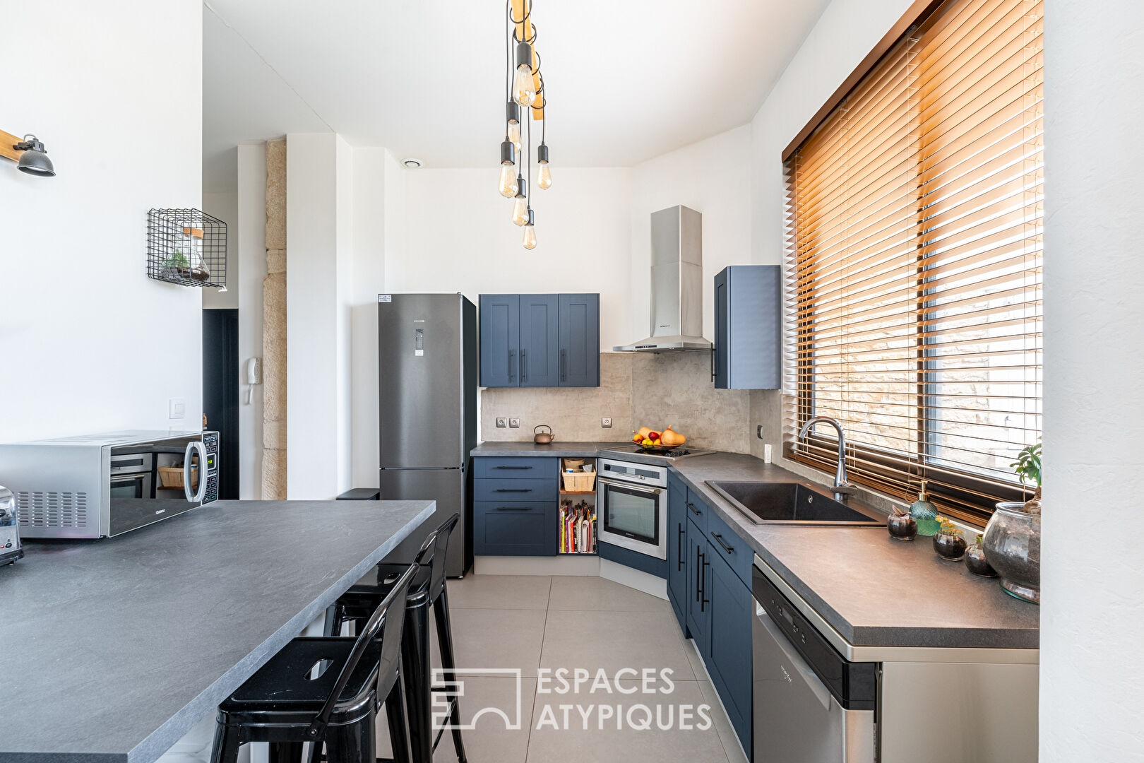 Dès l’entrée, le caractère atypique du lieu vous transporte : la pierre apparente, la rénovation contemporaine et la hauteur sous plafond confèrent une atmosphère empreinte de sérénité et d’élégance.