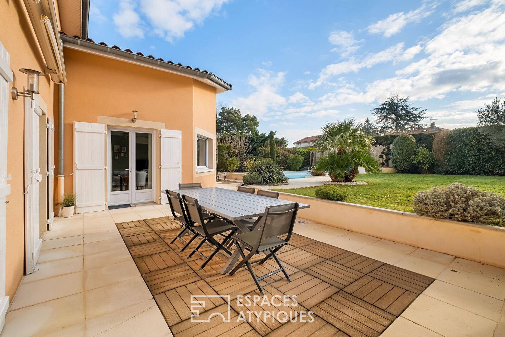 Implantée au coeur de Chaponost, dans un environnement résidentiel recherché, cette maison familiale de 176m² , construite en 1970 est entièrement rénovée. Elle se déploie sur une parcelle arborée de 879 m² avec piscine, terrasses et abri de jardin. Cette propriété conjugue volumes généreux, prestations contemporaines et qualité de vie, à deux pas des commodités.