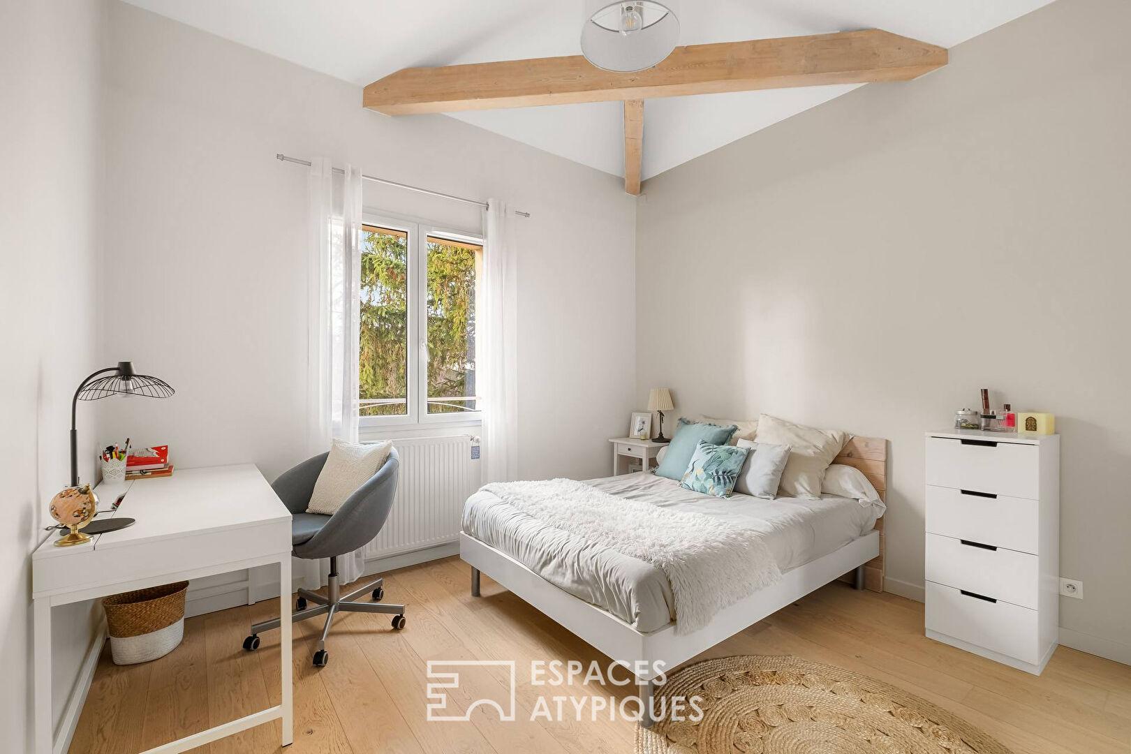 Cette maison rénovée se distingue par son architecture singulière, ses volumes atypiques et son cadre de vie.