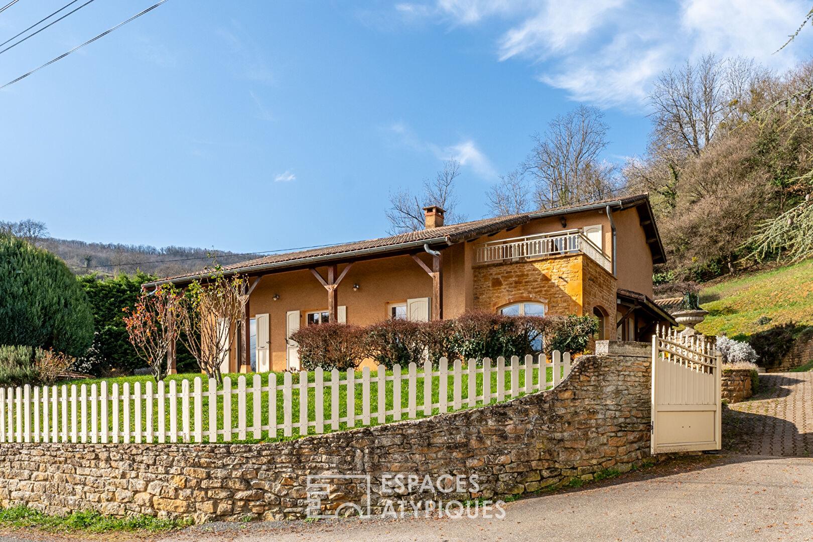 Nichée au coeur de la commune de Ville sur Jarnioux, à quelques pas seulement de l’école et de l’arrêt de bus, cette propriété offre un cadre de vie rare : une vue dégagée sur la nature, un emplacement idéal et une atmosphère paisible où l’on se sent bien dès les premiers instants.