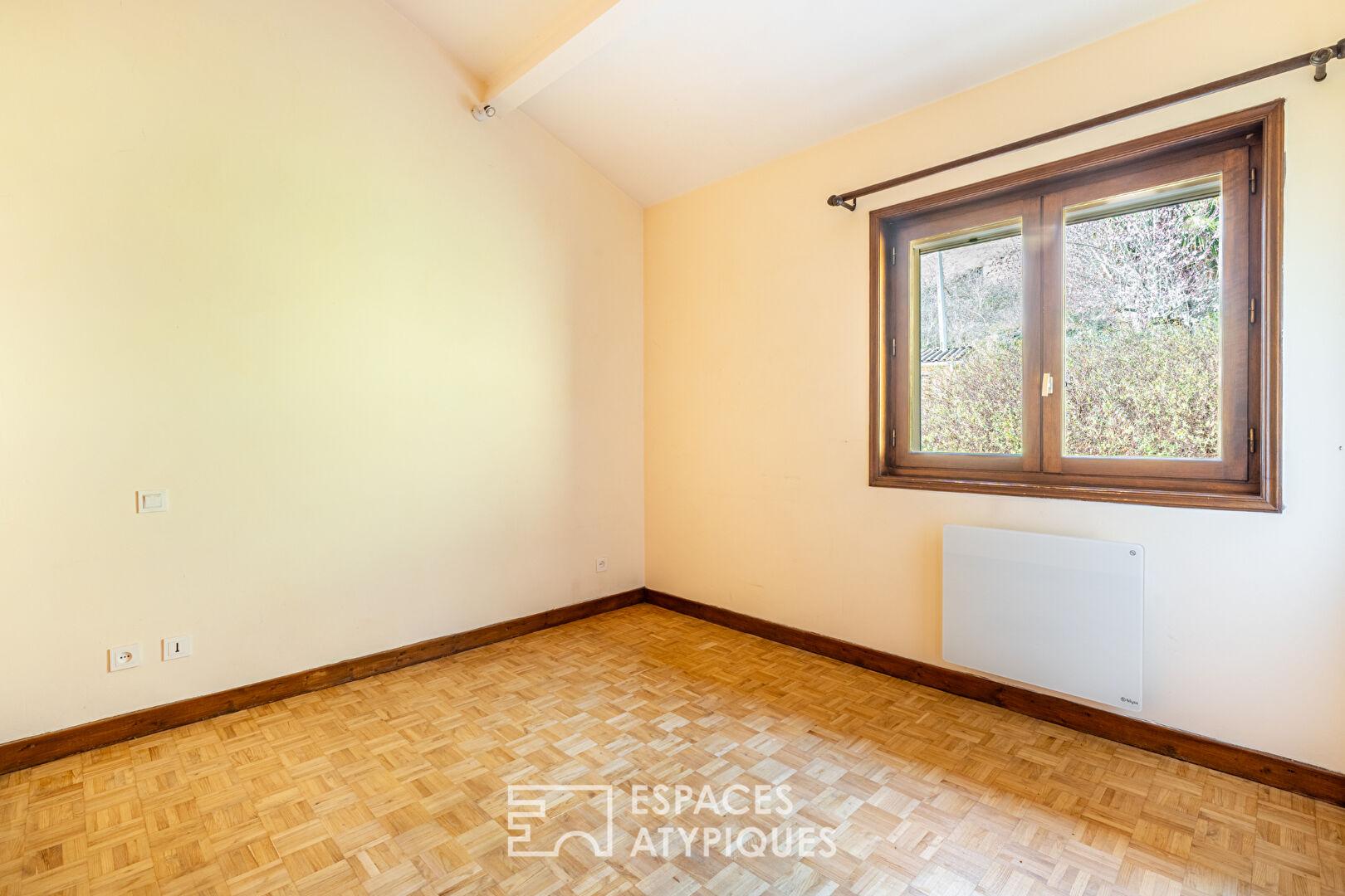 Côté nuit, la maison propose quatre chambres confortables, dont une en rez-de-chaussée, avec la possibilité d’en aménager une cinquième selon vos besoins ou vos envies.