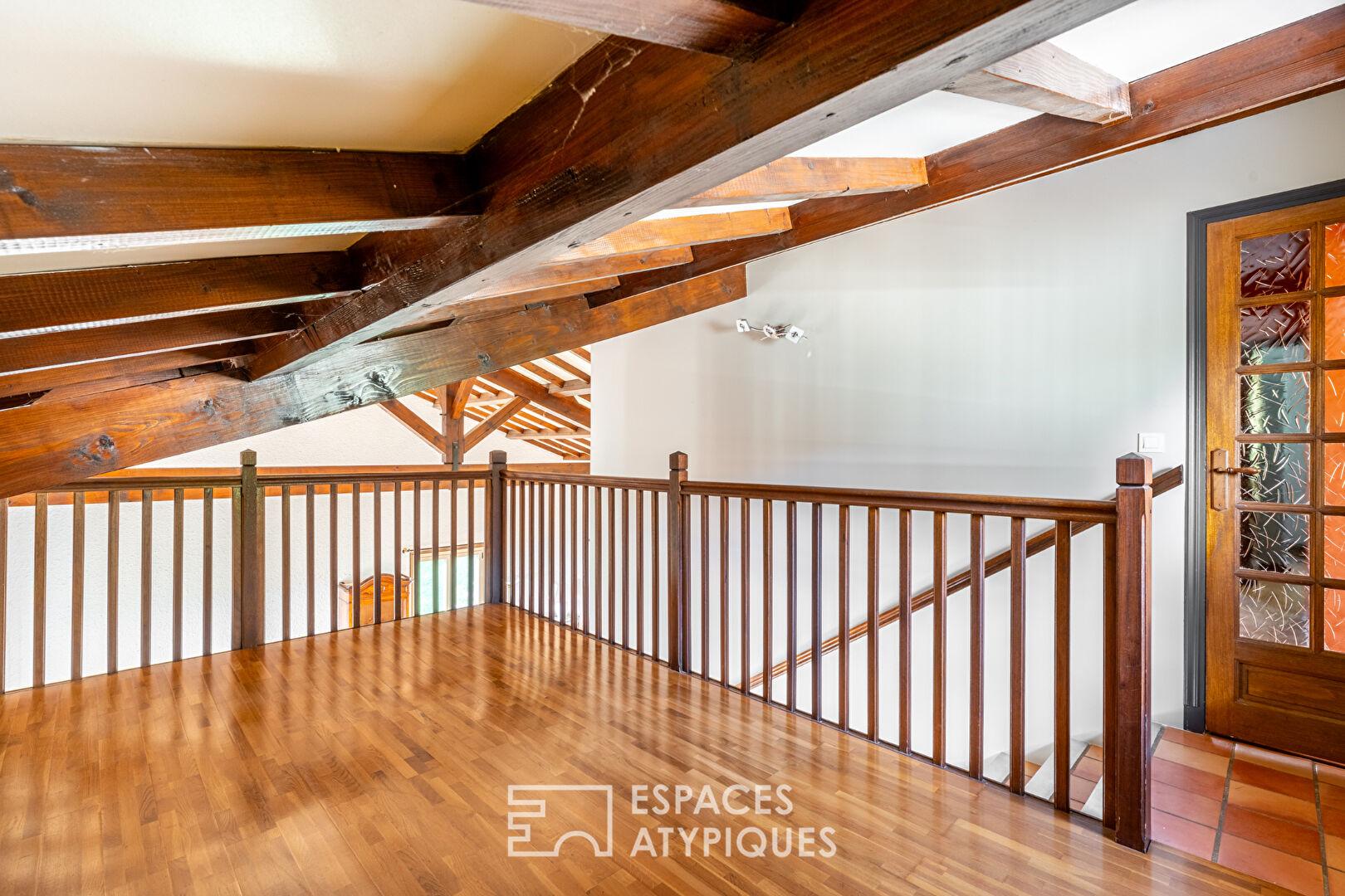 Dès l’entrée, vous serez charmé par les beaux volumes, la lumière naturelle qui inonde chaque pièce et la grande pièce de vie déplafonnée, à la fois chaleureuse et moderne.