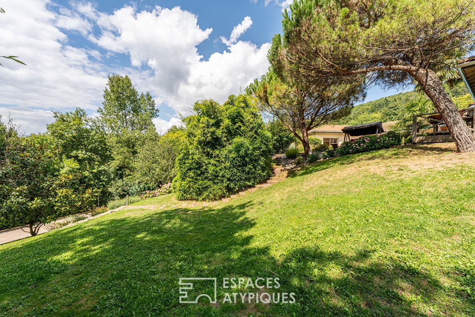Maison de plain-pied avec jardin arboré et piscine au coeur de Limonest