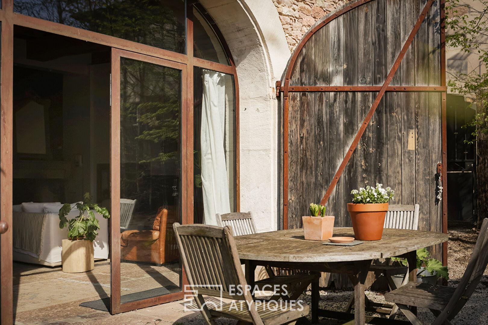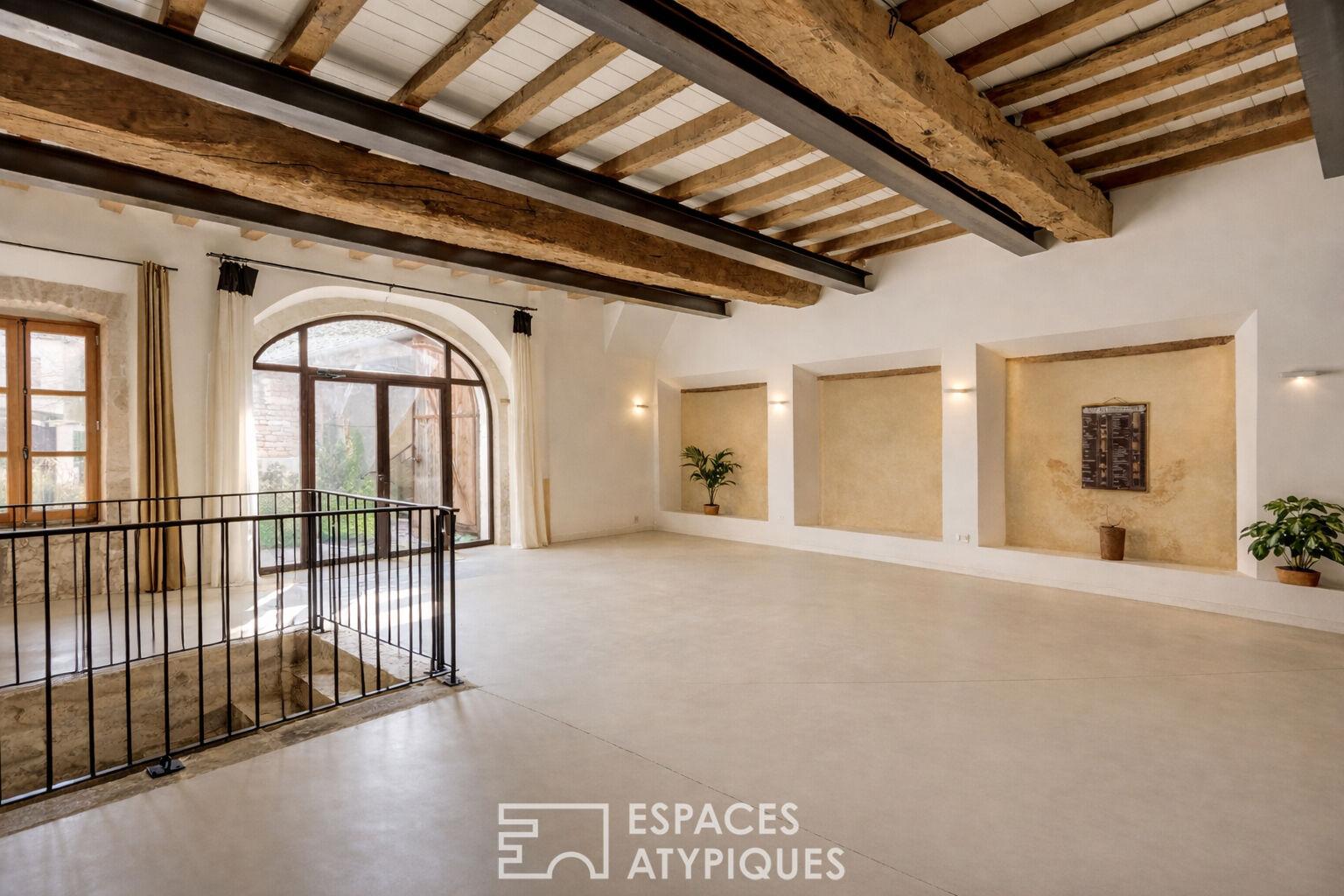 Au coeur de Givry, à proximité immédiate des commerces et entouré des vignobles réputés de la région, cet ancien chai magnifiquement réhabilité déploie environ 450 m² habitables sur une parcelle de près de 600 m². Véritable pépite de l’immobilier de prestige, cette demeure en retrait de rue offre un calme absolu, sublimé par un jardin paysagé piscinable. L’histoire des lieux, autrefois propriété d’un comte local, se lit encore dans la pierre rosée de Givry et les majestueuses poutres sablées qui structurent l’espace.