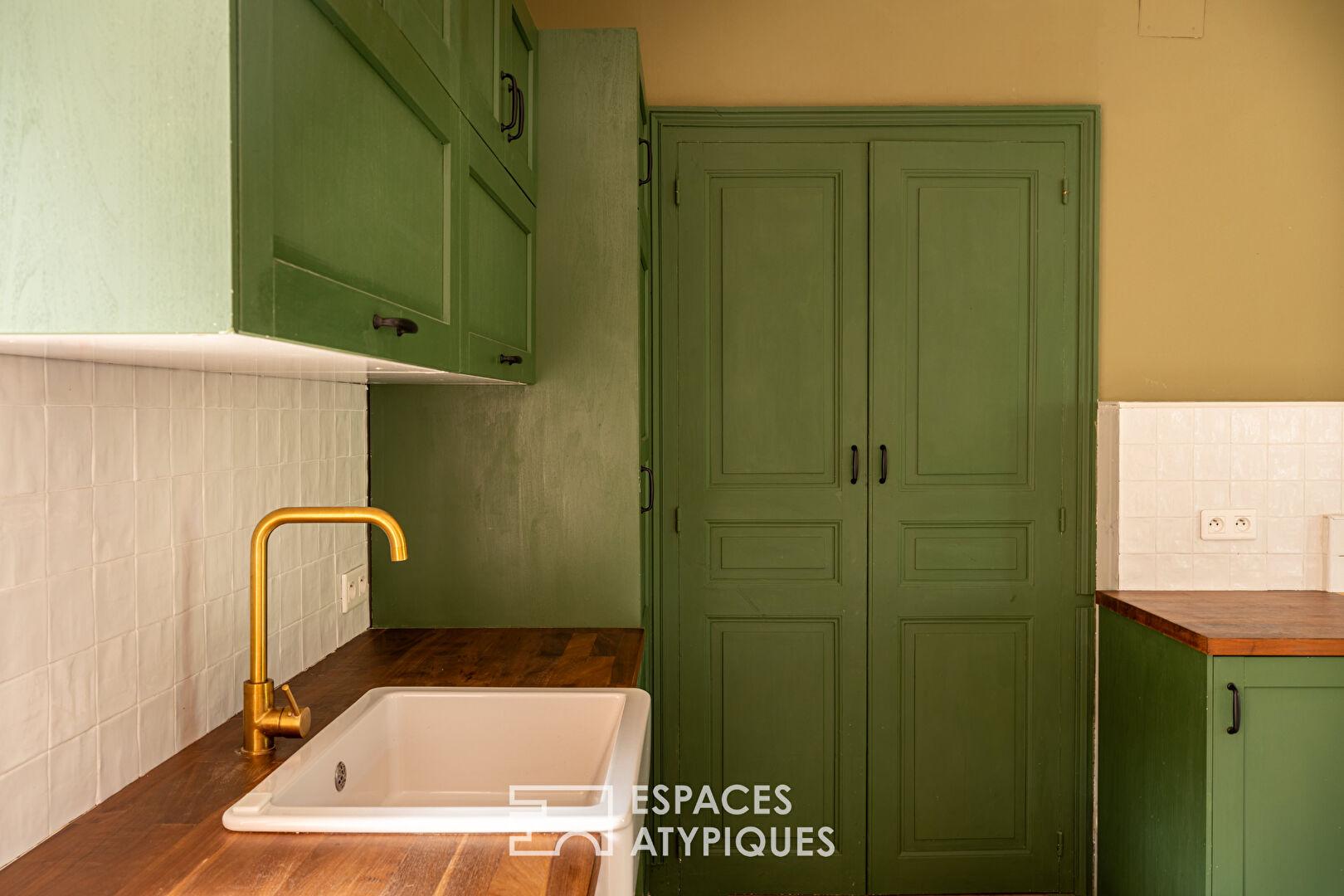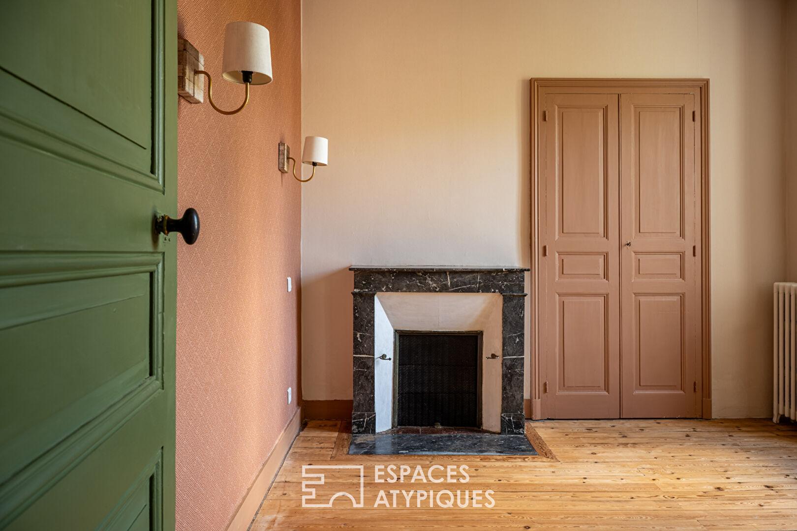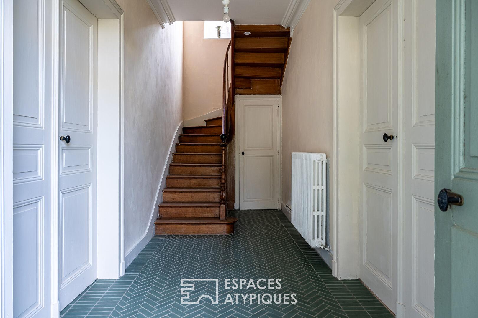 Située sur la commune de Dissay-sous-Courcillon, cette élégante bourgeoise de 1902 développe 187 m² habitables sur une parcelle de 547 m². Exploitée en chambres d’hôtes, cette propriété séduira les amateurs de biens atypiques à la recherche d’un lieu de vie à la fois accueillant, convivial et singulier. Entièrement rénovée, elle mêle harmonieusement influences méditerranéennes, esprit contemporain et touches artisanales uniques comme les carreaux de Zelliges verts qui habillent avec caractère son entrée.