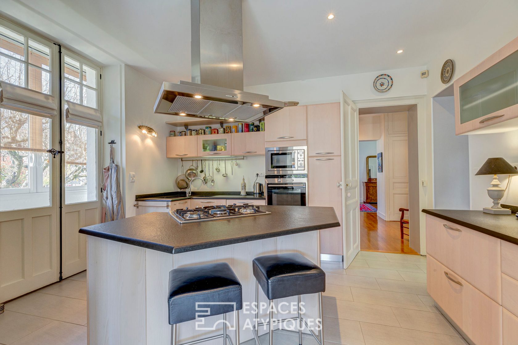 Située dans un quartier résidentiel de Chambéry, cette vaste maison de maître a été entièrement rénovée pour créer une luxueuse habitation moderne sur un terrain clôturé de 1820 m².