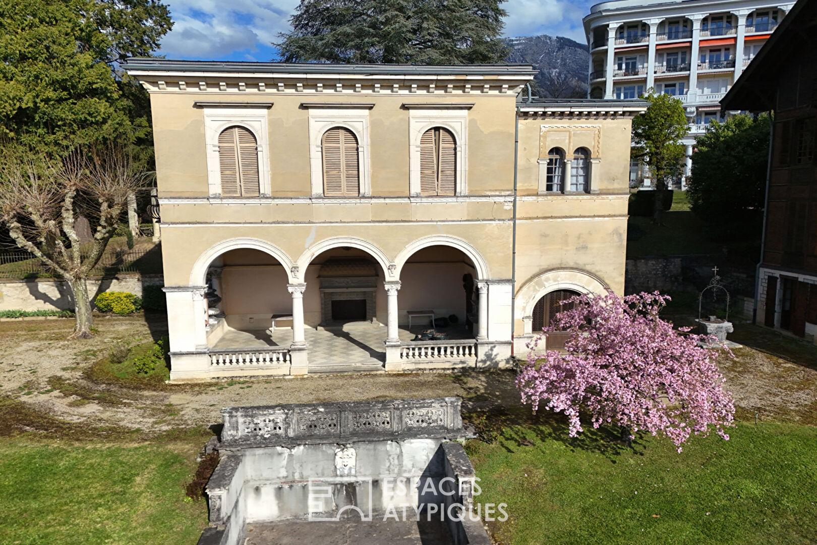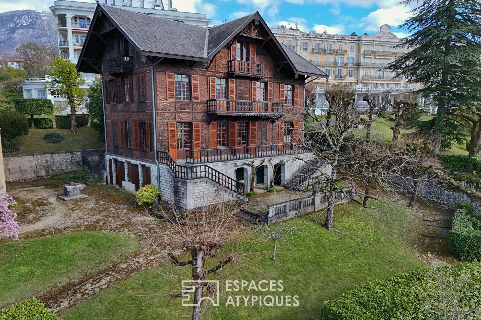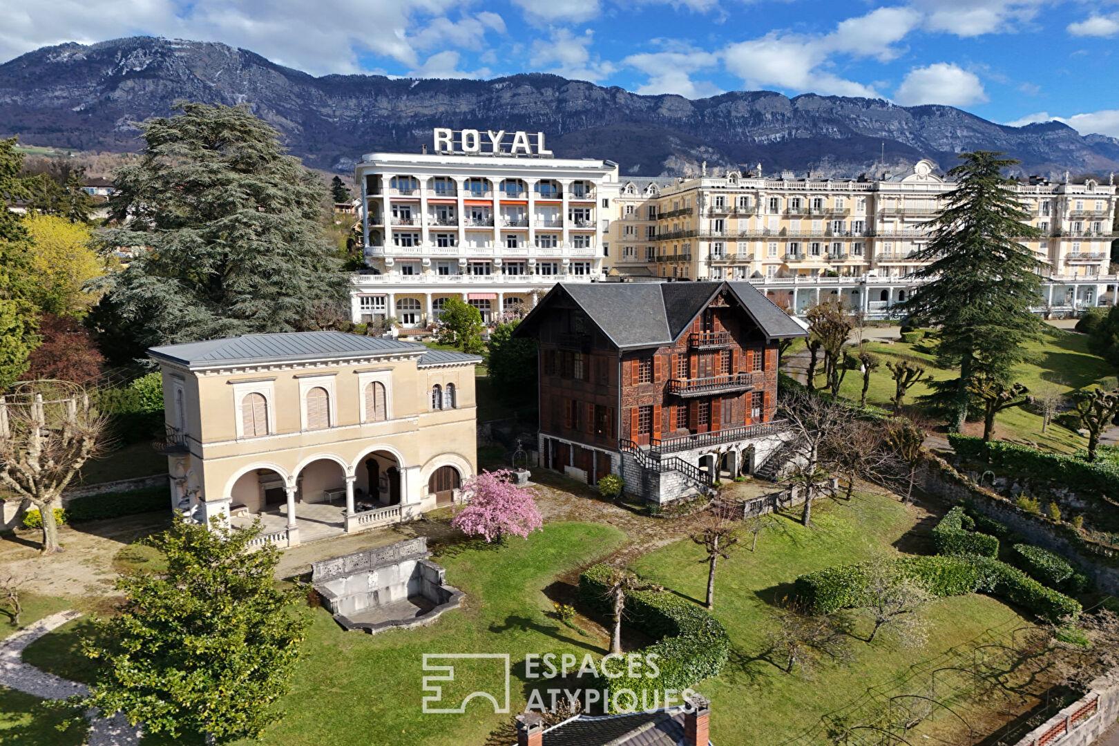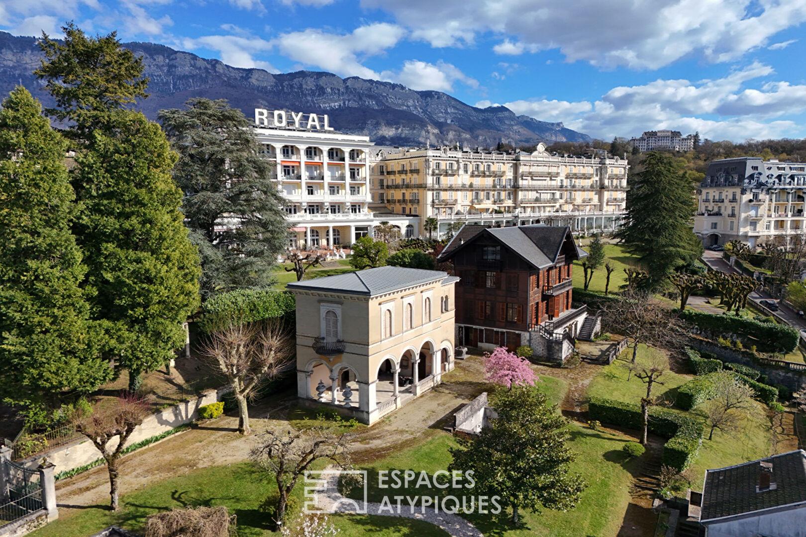 Sur les hauteurs d’Aix-les-Bains, cet ensemble immobilier de prestige déploie un potentiel de réinvention rare. Ce domaine d’exception, véritable pépite de l’immobilier atypique, se compose de quatre bâtisses de caractère nichées dans un environnement verdoyant, offrant des terrasses et balcons aux vues inspirantes.