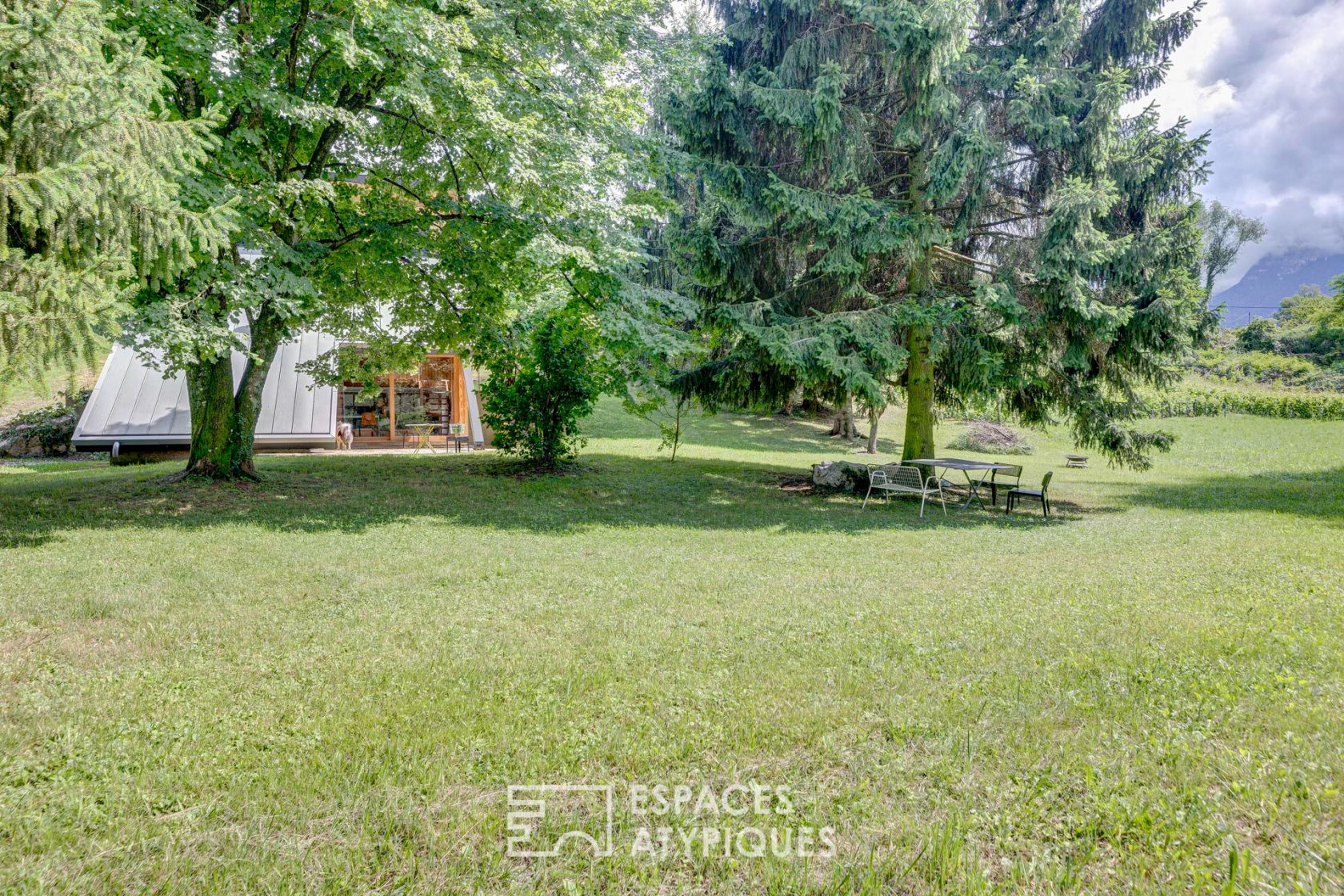Situé au Sud de Chambéry, en communion avec la nature tout en restant à proximité des commerces, des transports et des écoles, cet habitat insolite et atypique ne peut que séduire !