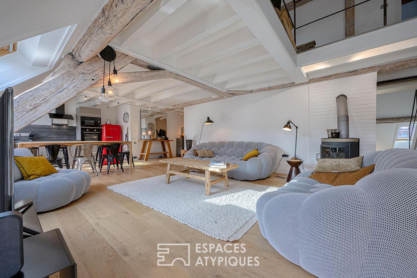 Ce duplex unique, véritable belvédère sur la ville, incarne parfaitement l’immobilier de caractère par son volume et son esprit singulier.