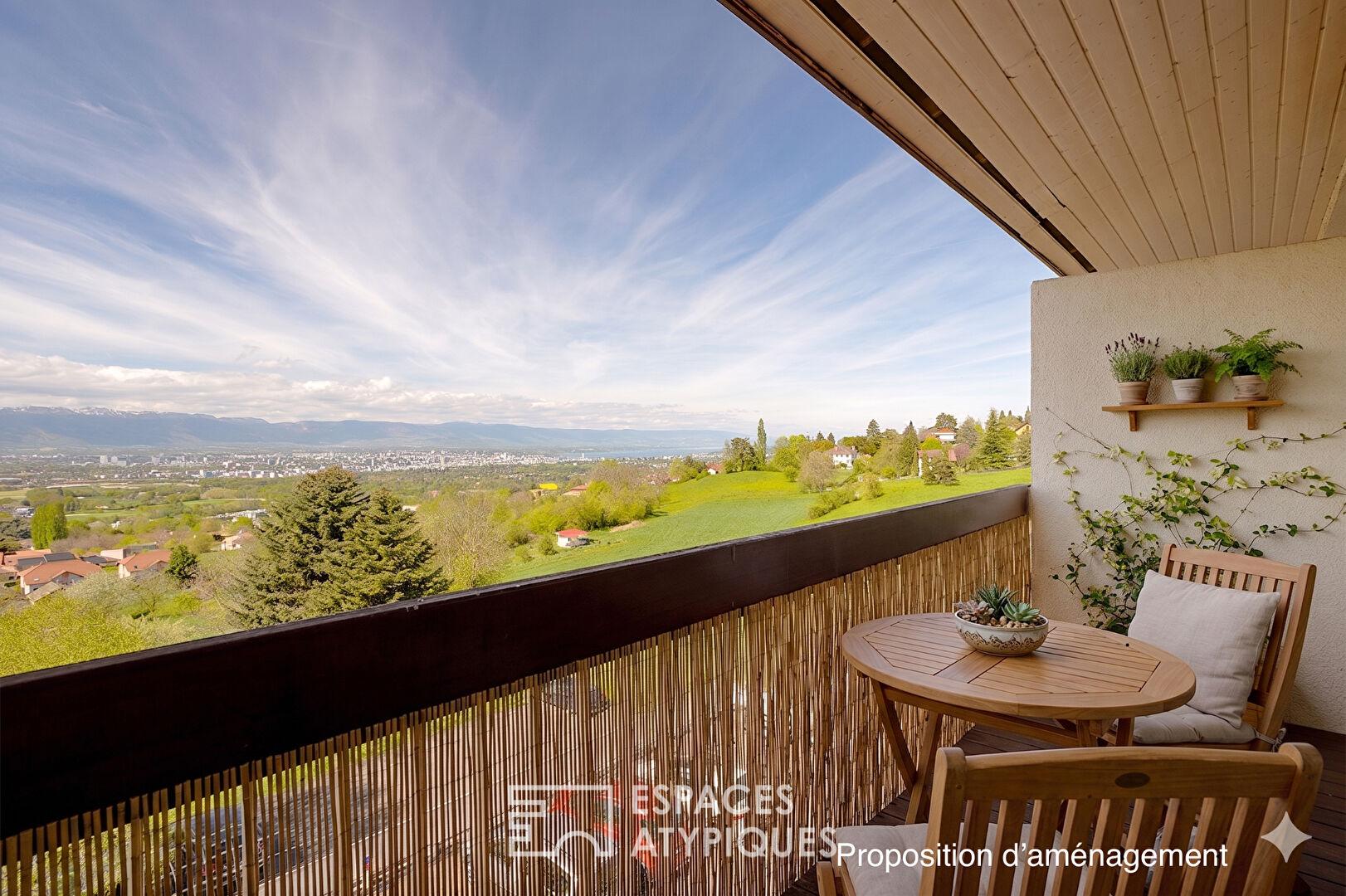 Idéalement situé sur les hauteurs de Collonges-sous-Salève, au sein d’une résidence calme, ce duplex traversant prend place au troisième et dernier étage. Entièrement repensé il y a un an par une architecte d’intérieur, il déploie près de 96 m² au sol (76,33 m² Carrez) et offre un cadre de vie hors du commun, suspendu entre le Mont Salève et le bassin genevois.