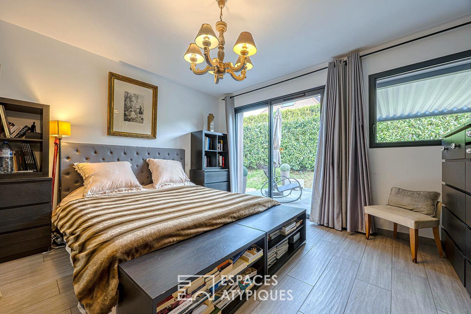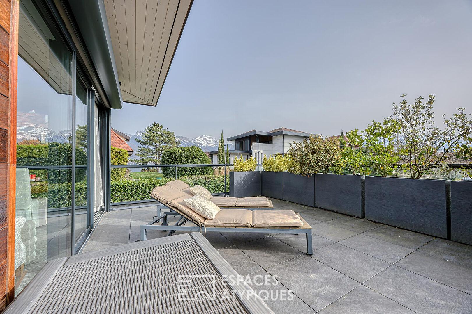Maison d’architecte avec terrasses et jardin au bord du lac