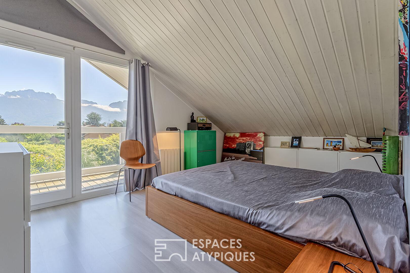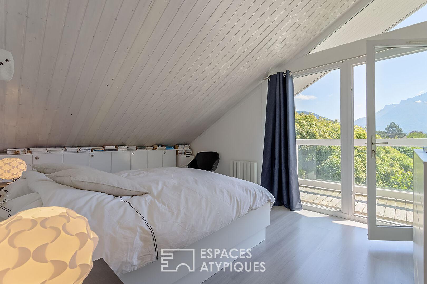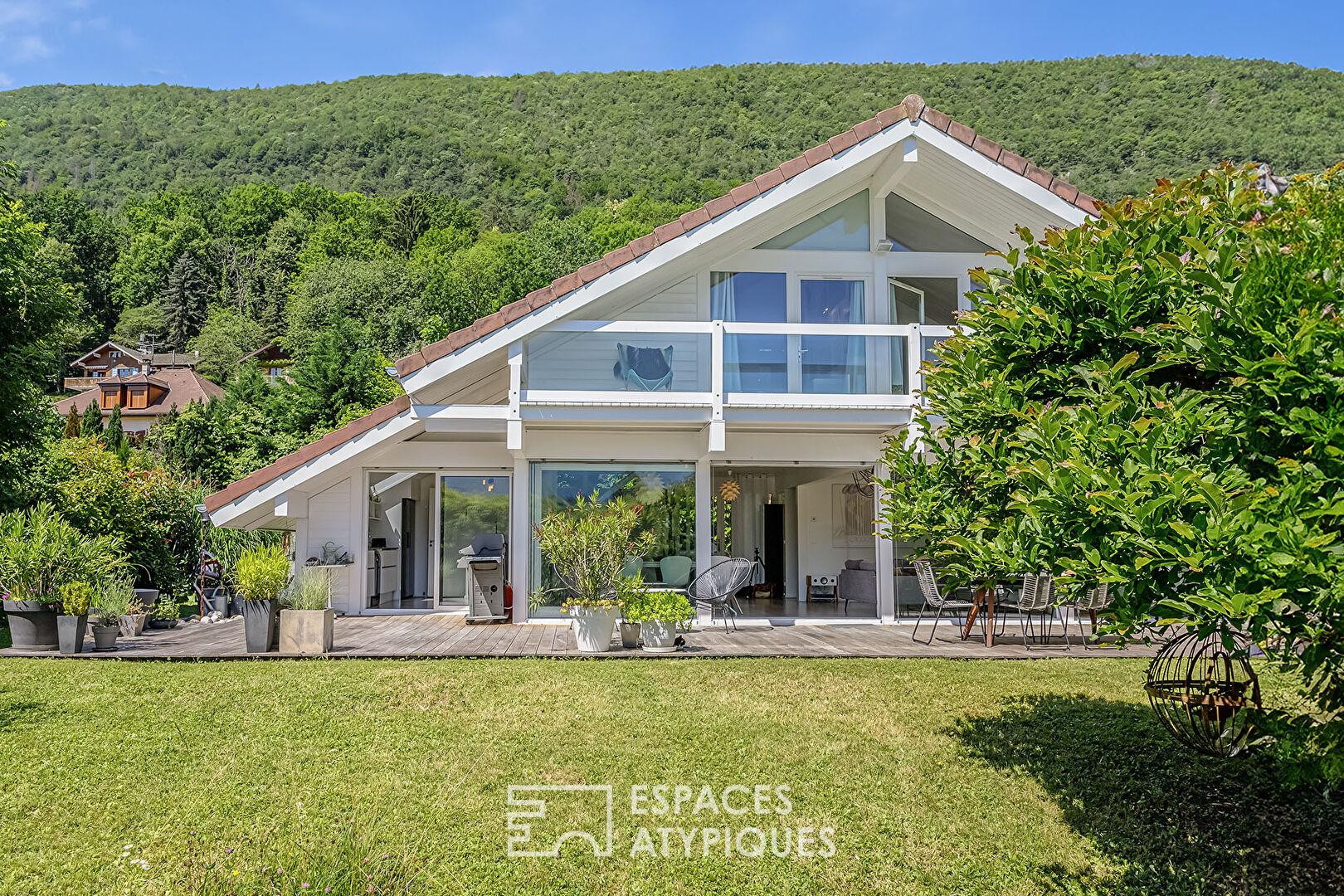 Nichée à Sévrier, au coeur d’un environnement résidentiel calme, cette réalisation singulière séduit par sa structure chaleureuse.