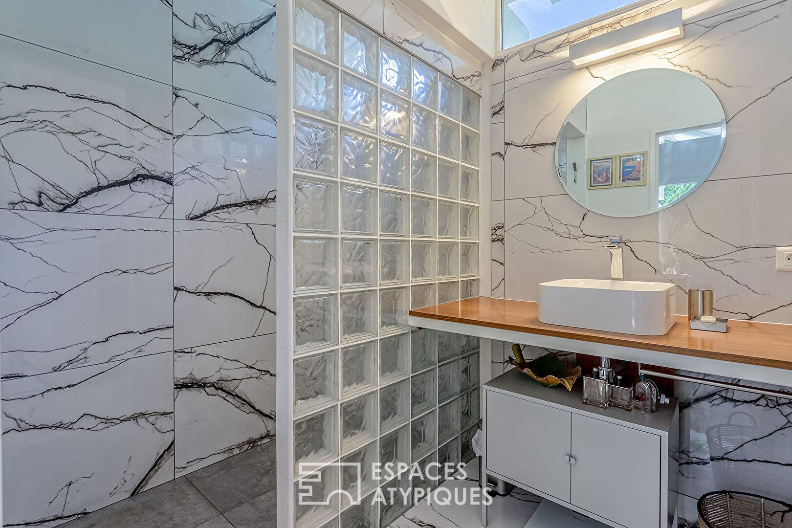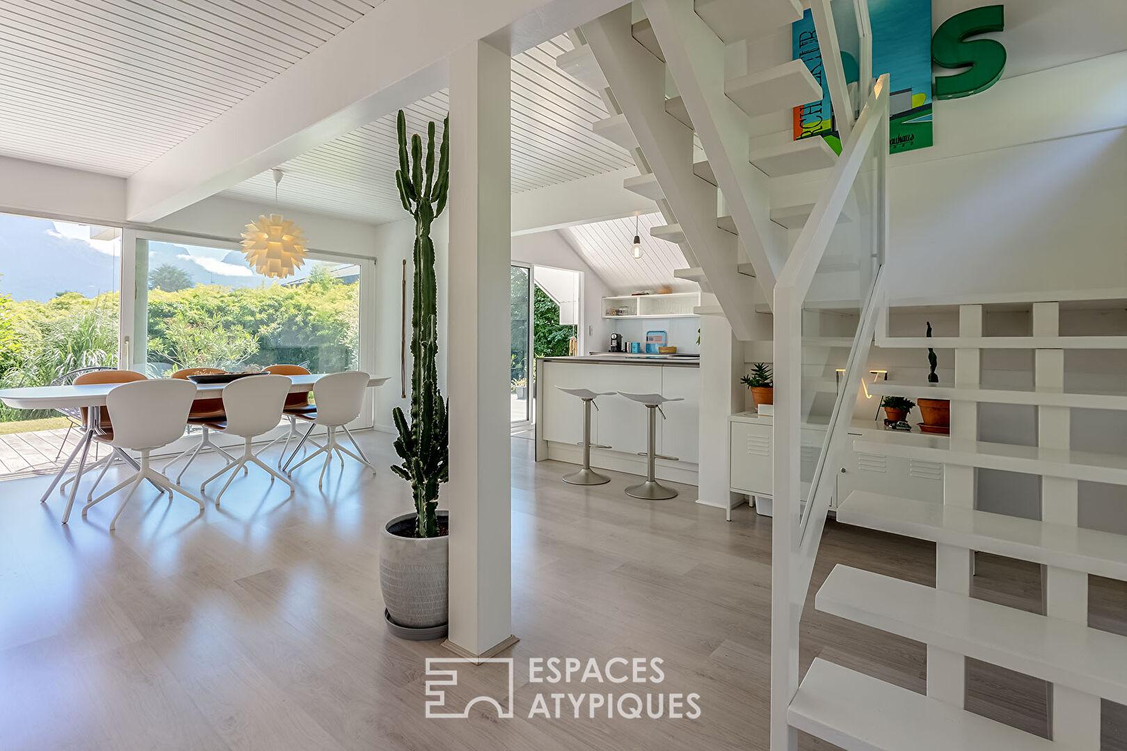 Entre jardin paysager, terrasse panoramique et piscine, l’immobilier atypique prend ici tout son sens, offrant une vie de famille bercée par la lumière et la sérénité.