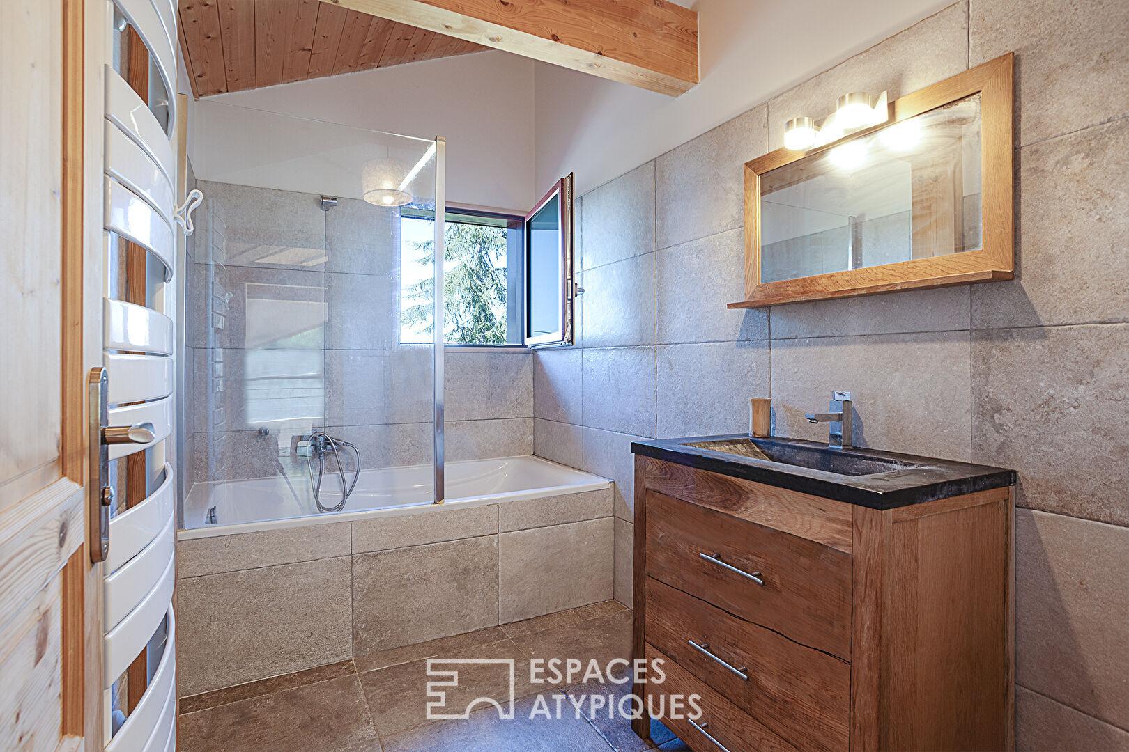 Un bien immobilier atypique, alliant charme naturel et lignes contemporaines, pour une expérience de vie singulière, , au sein d’une maison écologique à haute performance énergétique