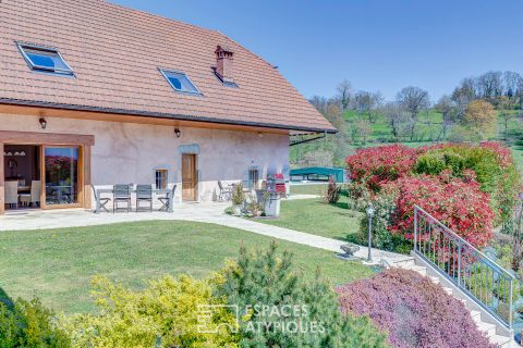 Situé au calme sur les hauteurs de la commune de Cusy, ce corps de ferme de 250 m² environ s’articule sur deux niveaux largement ouverts sur un terrain de 4600 m².