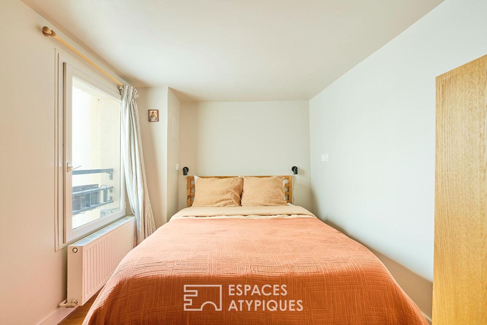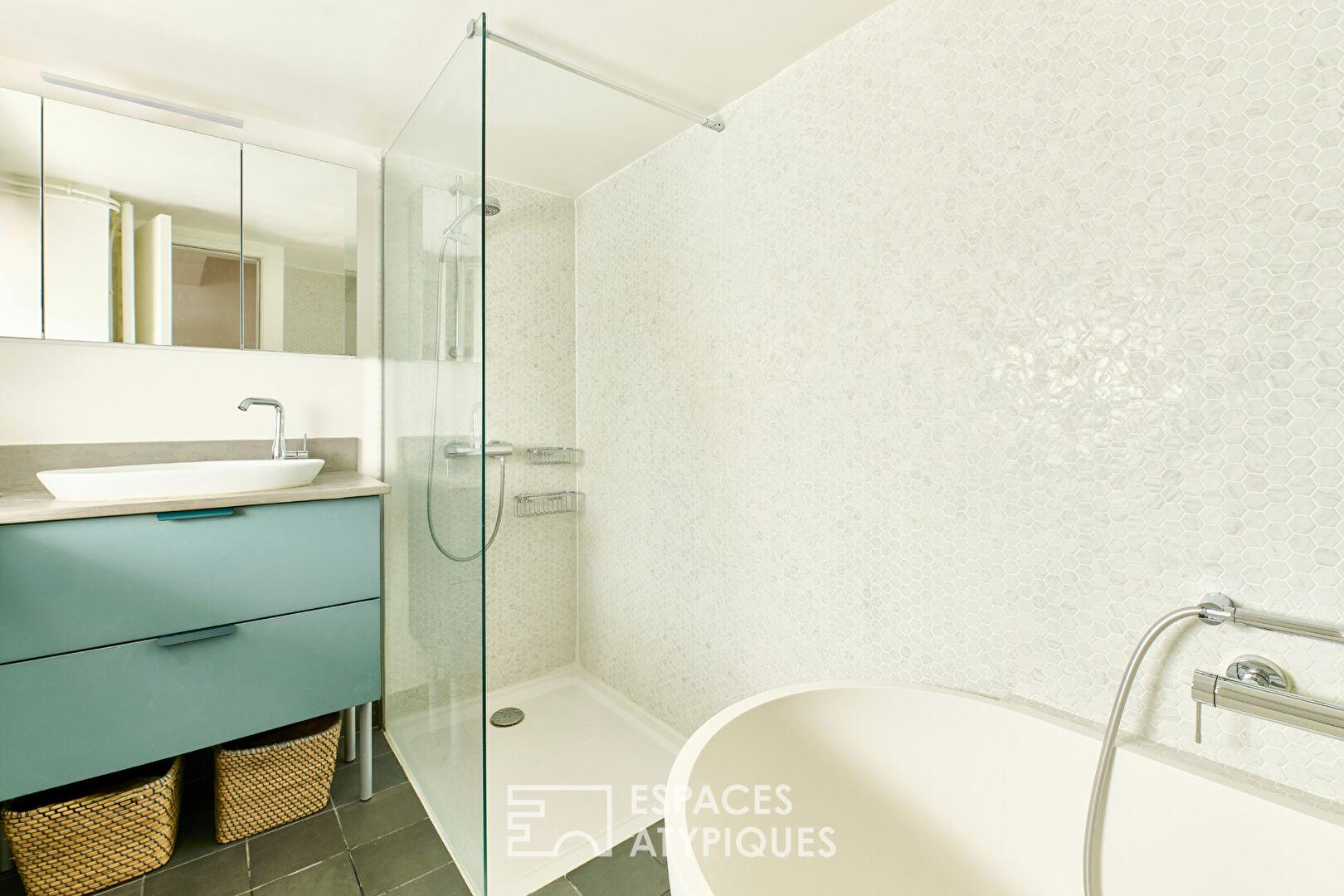 Entièrement repensé par un architecte, il occupe seul son étage avec un palier privatif, offrant une sensation rare d’intimité dès l’arrivée.
