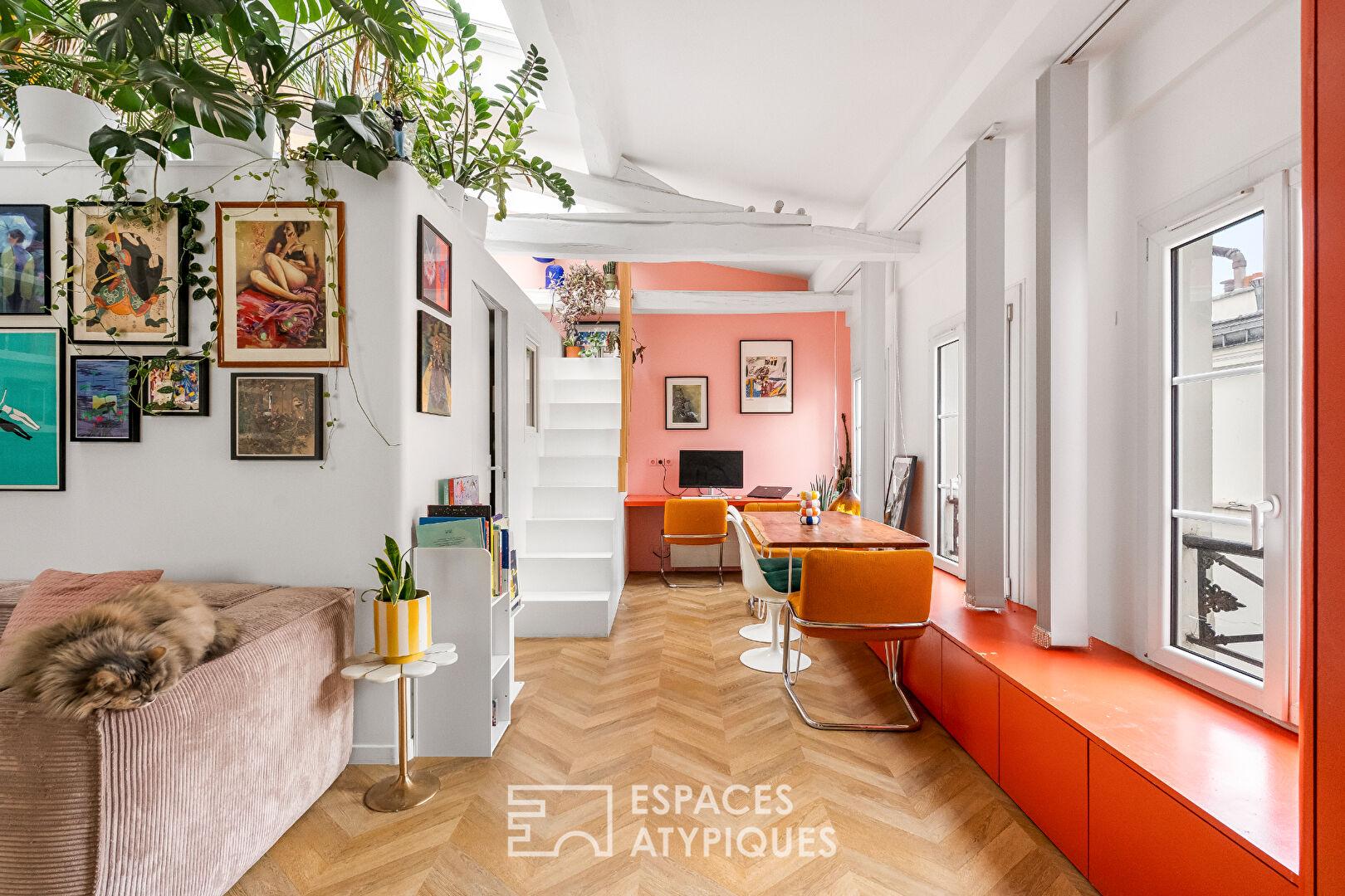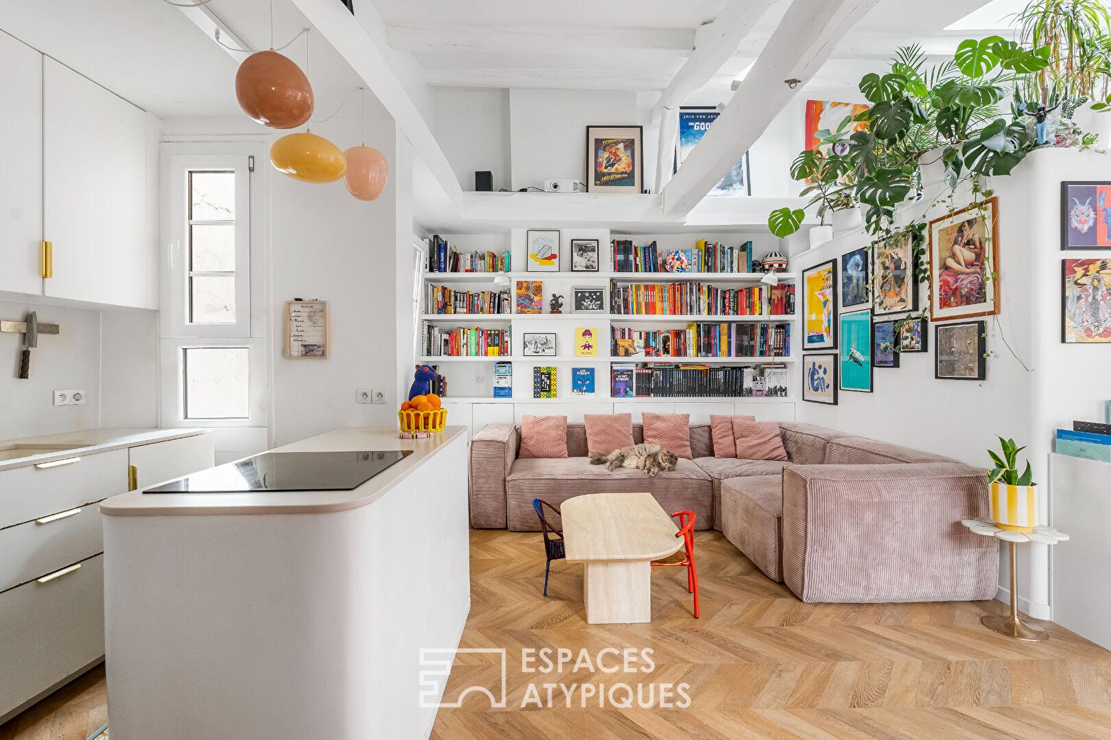 Dernier étage sous les toits repensé par architecte dans le Haut Marais