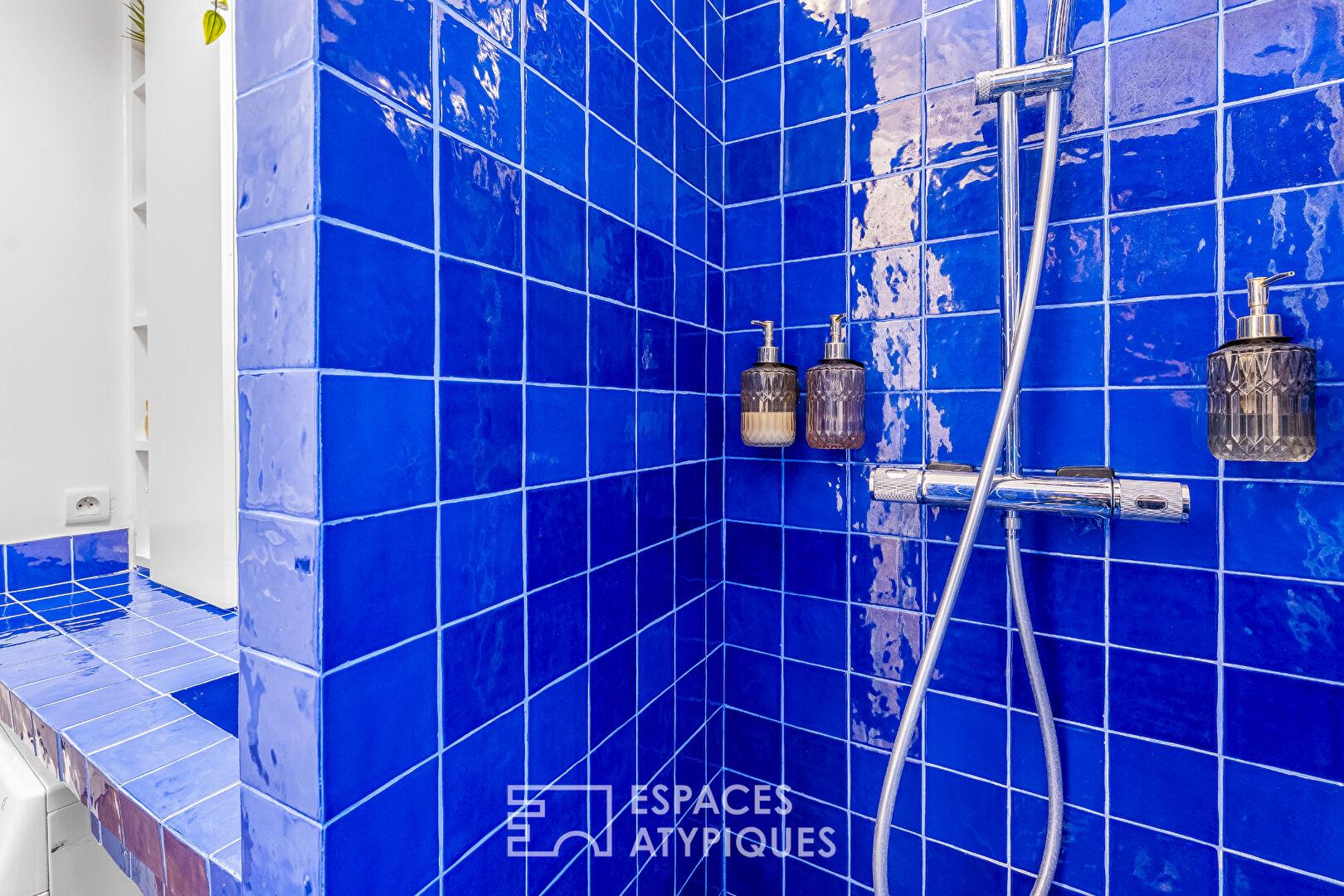 Cet appartement niché sous les toits lumineux par ses multiples fenêtres a bénéficié d’une optimisation de l’espace avec une rénovation contemporaine de qualité et offre un lieu de vie agréable.