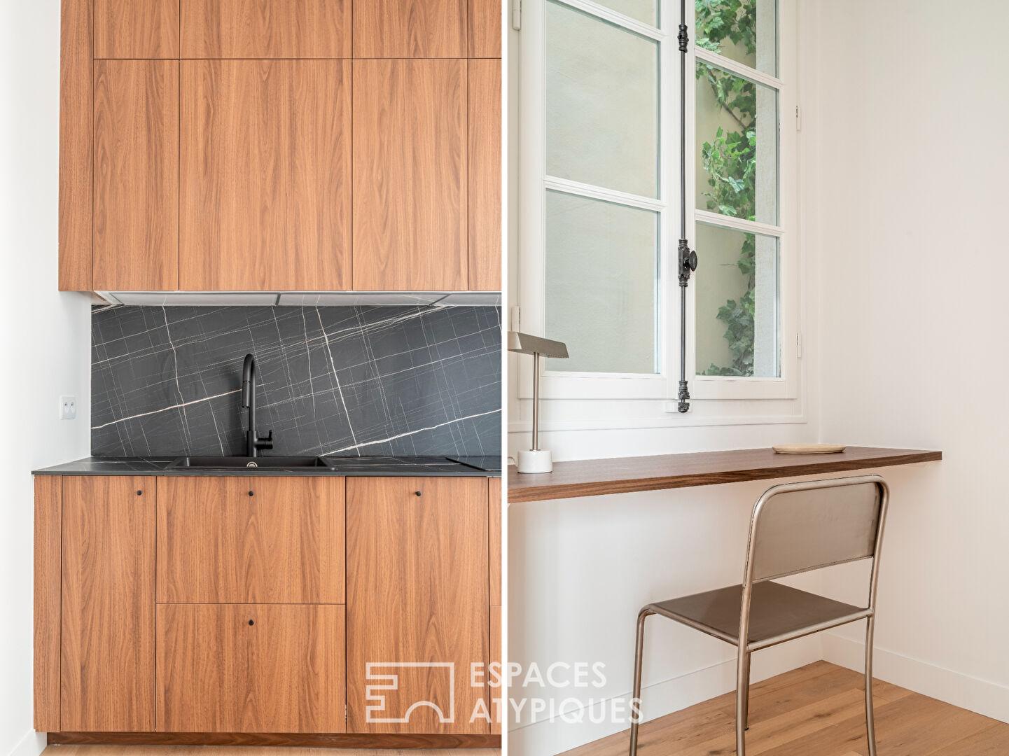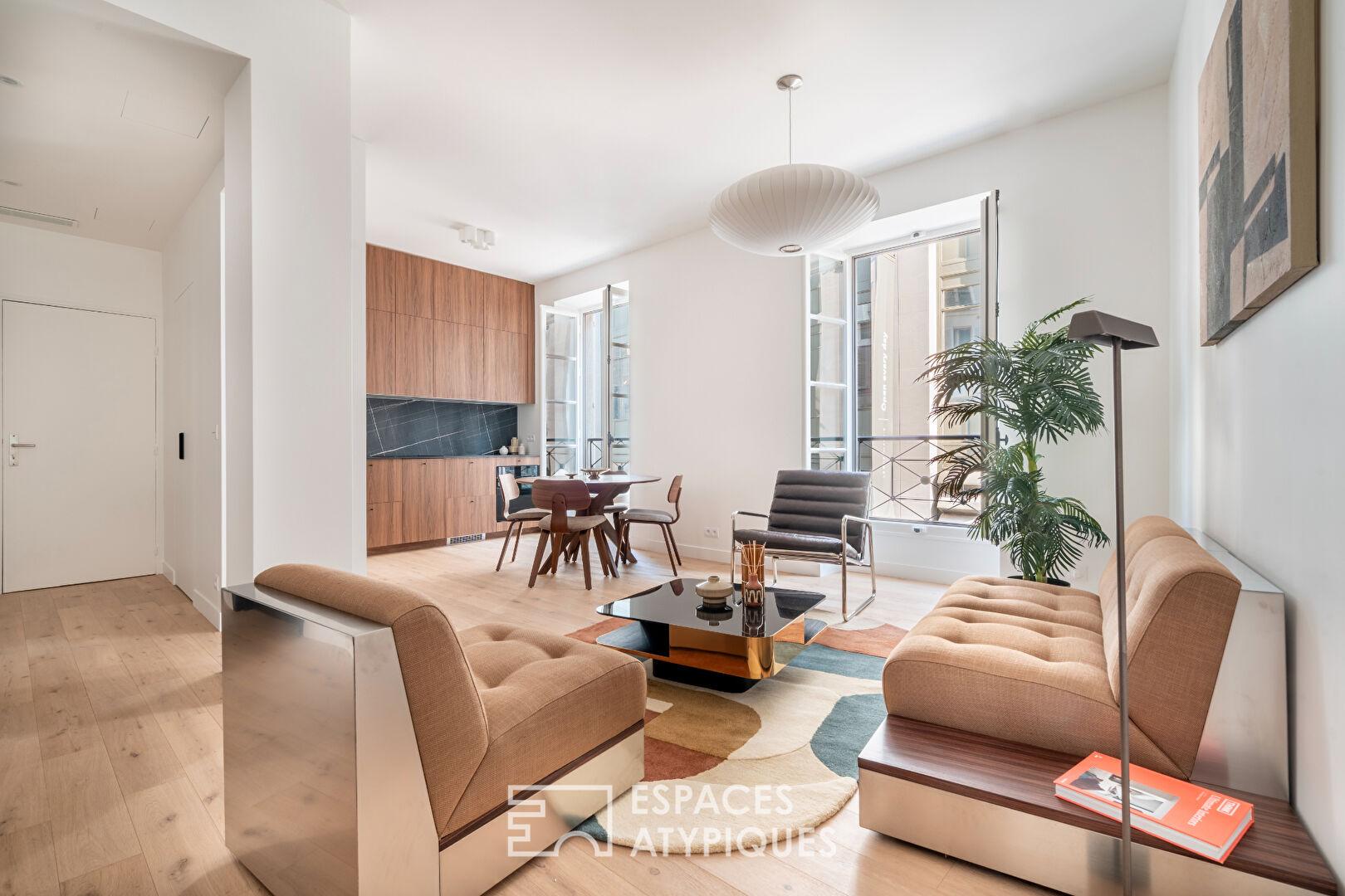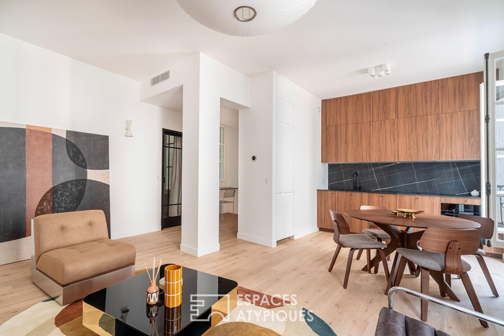 L’équilibre entre l’architecture d’origine et l’intervention contemporaine confère à cet appartement un caractère affirmé.