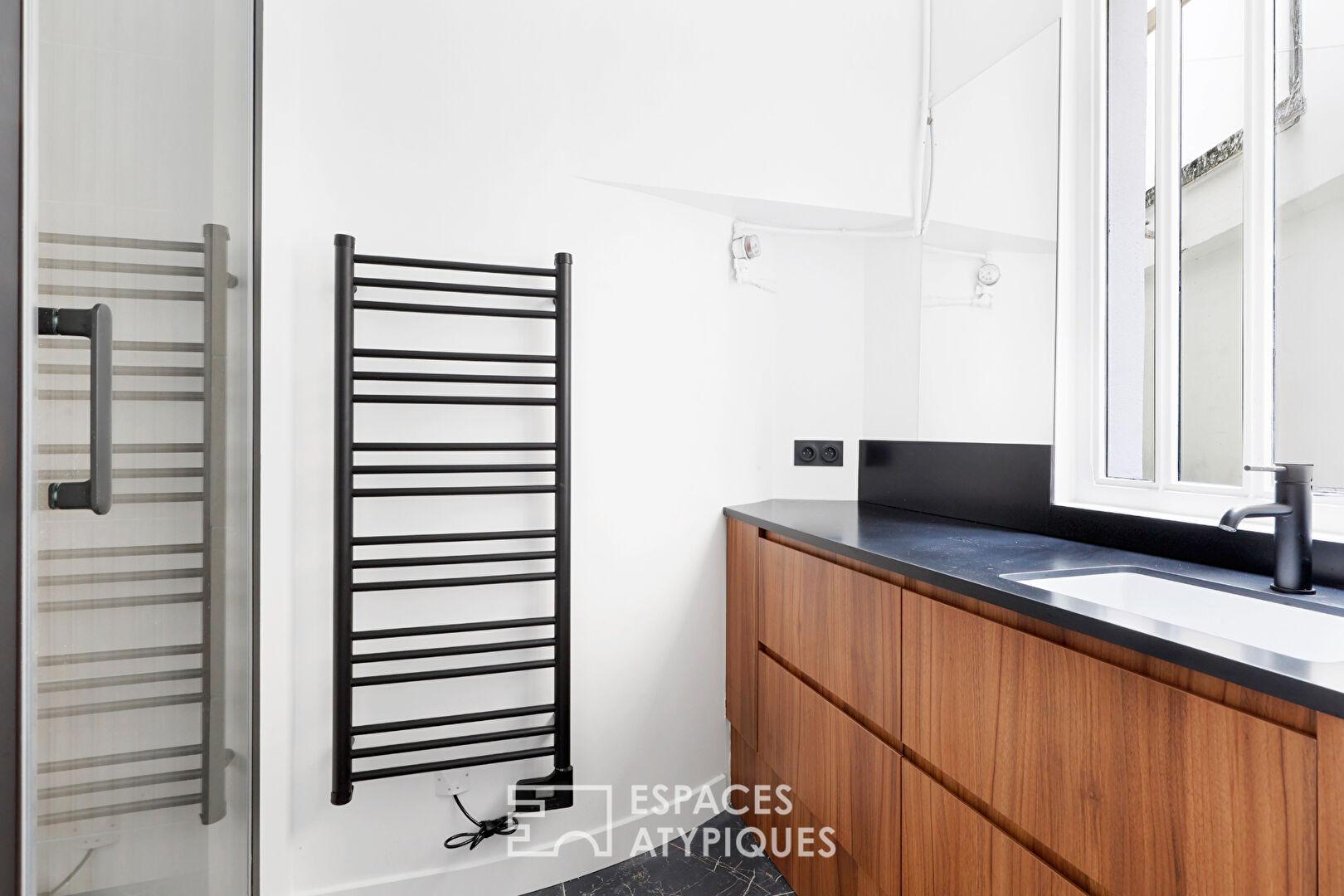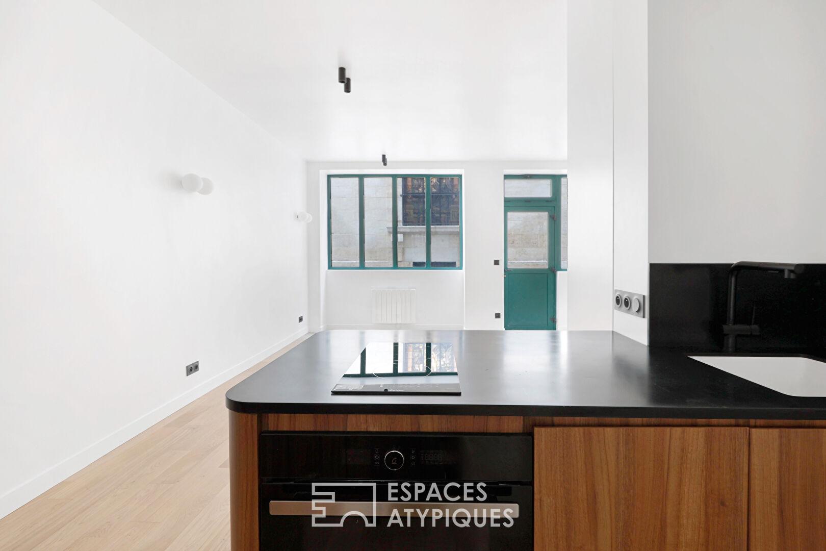 Au coeur d’un passage confidentiel du quartier Saint-Philippe du Roule, cet appartement contemporain de 47,88 m2 (47,71 m2 Carrez) a été entièrement repensé par architecte.