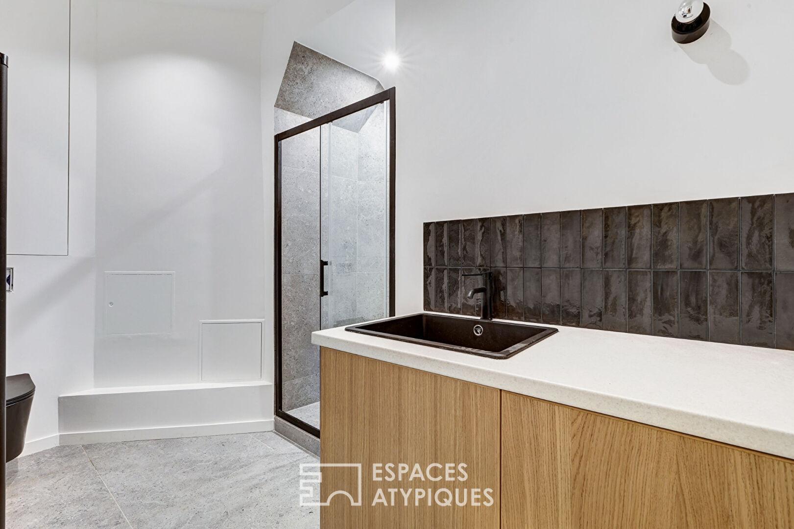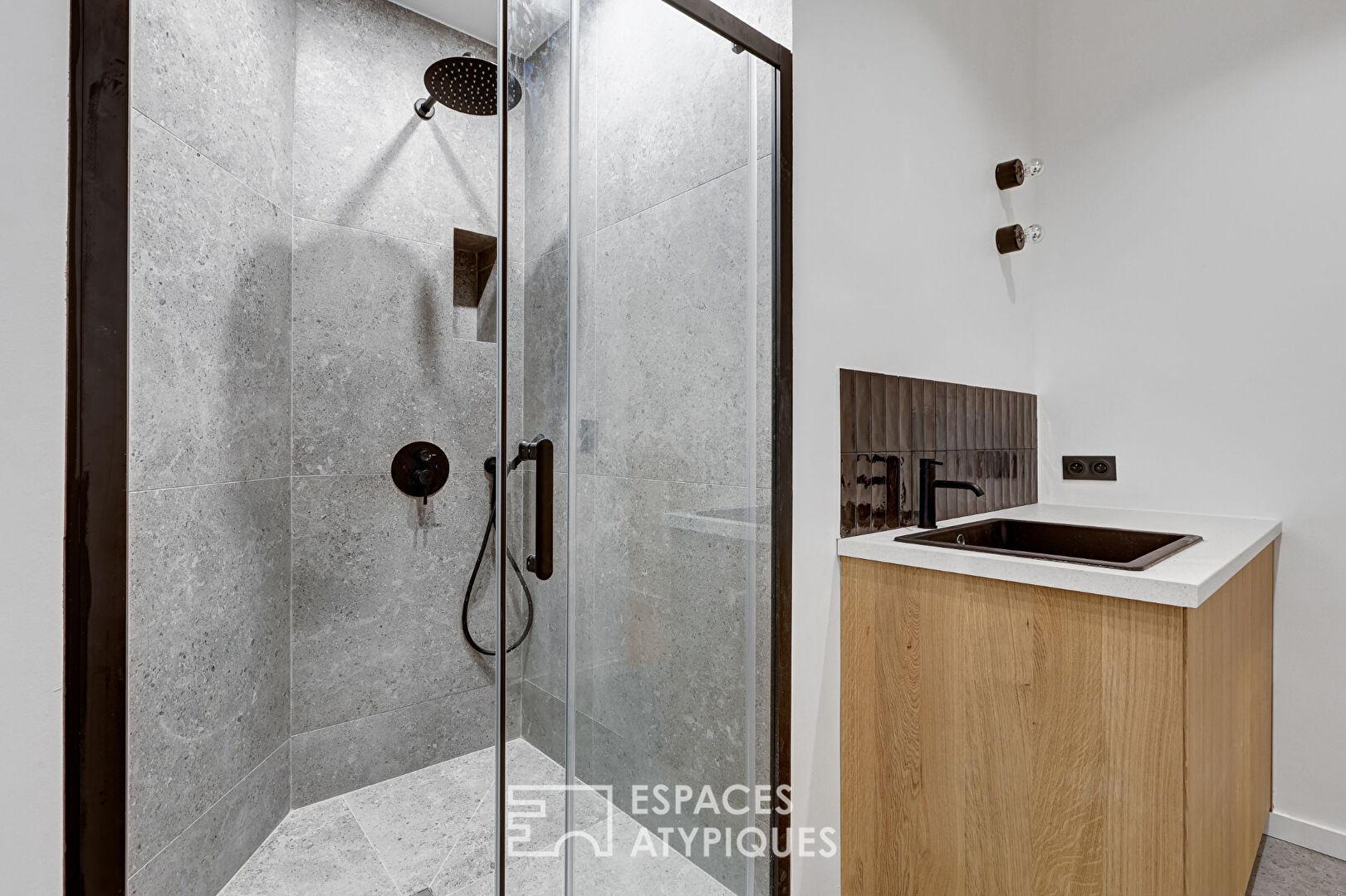 Elle s’accompagne d’une confortable salle de douche de 6 m² avec toilettes.