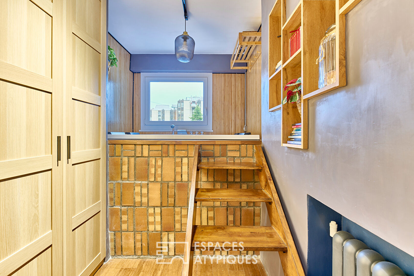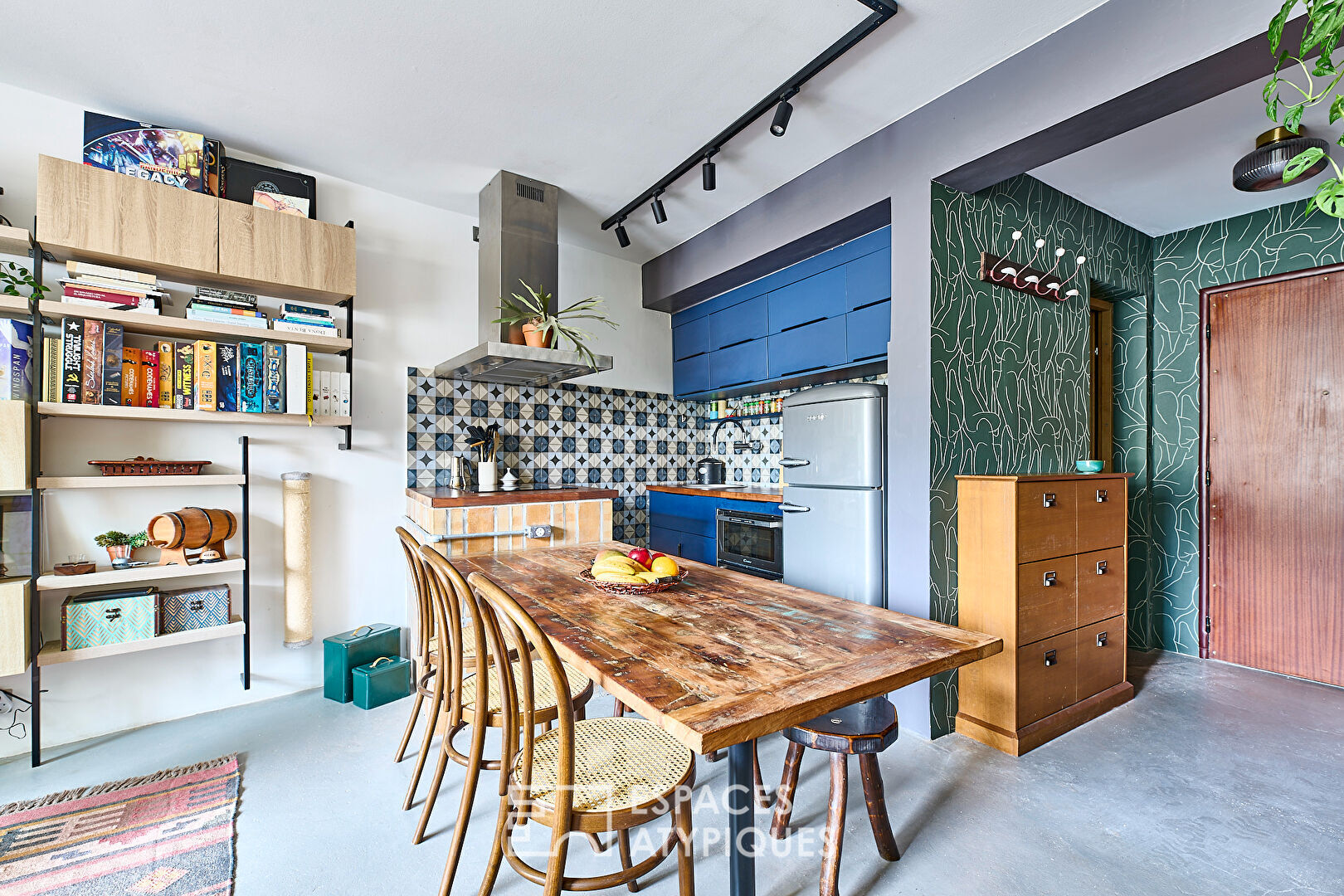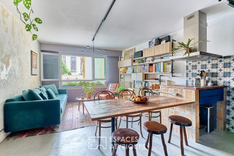 Entre le Canal Saint-Martin et l’Hôpital Saint-Louis, ce charmant deux pièces de 41 m² Carrez, situé au 1er étage d’une copropriété des années 50, a été entièrement repensé par une architecte dans un style néo-industriel élégant et fonctionnel.
