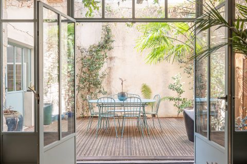 Sur cour, l’espace de vie de près de 80 m2 comprend un vaste séjour aux beaux volumes de 4 mètres avec sa verrière atelier toute hauteur s’ouvrant sur la terrasse végétalisée plein ciel. La cuisine aux équipements de qualités est agrémentée par de larges verrières zénithales apportant une belle luminosité prolongeant la sensation d’espace de la terrasse attenante.