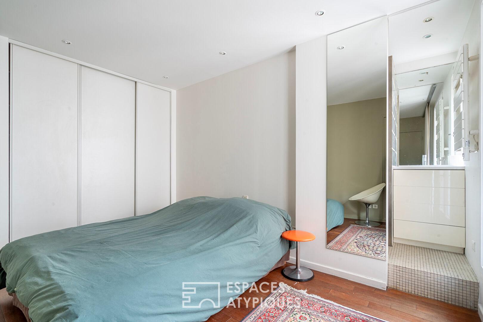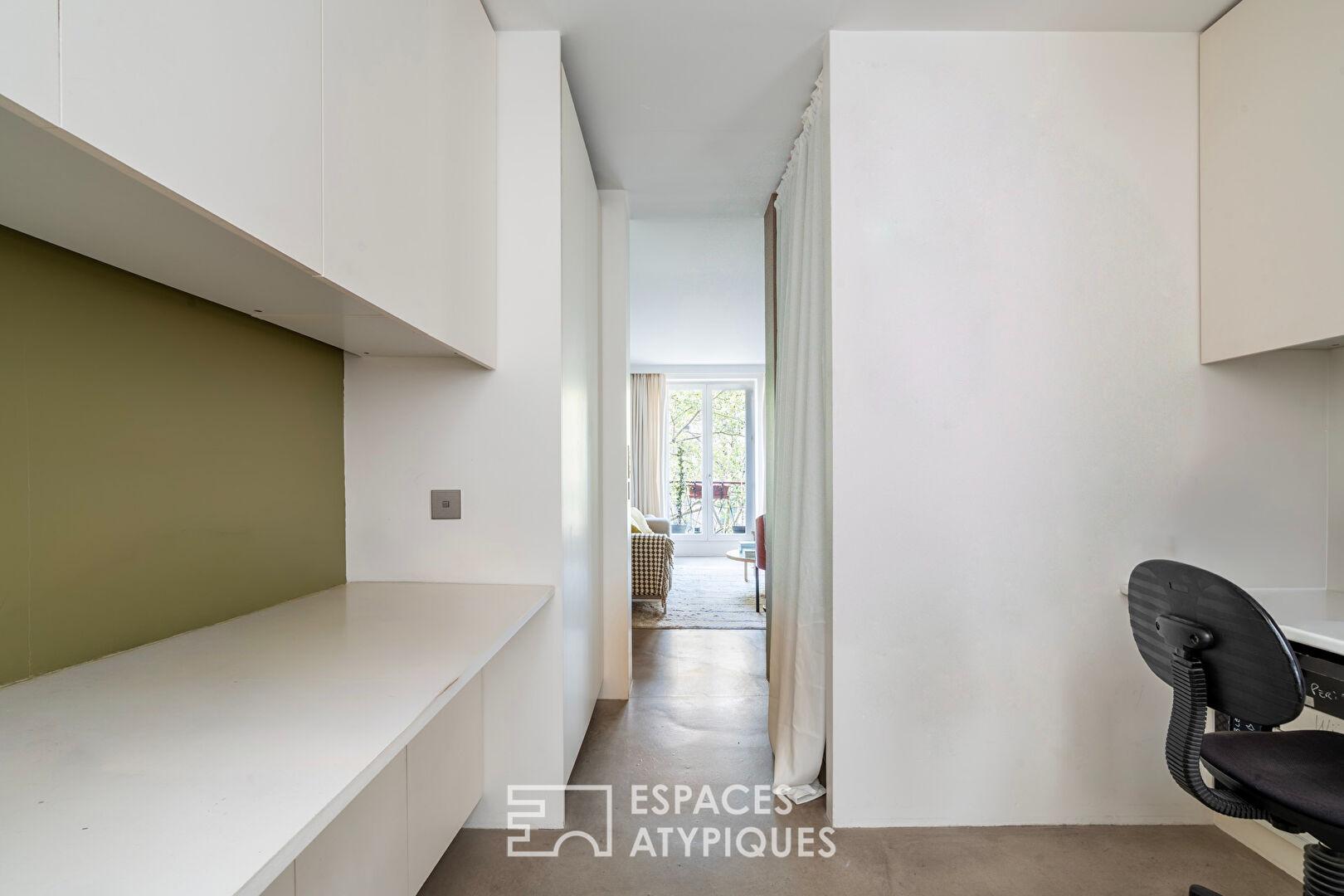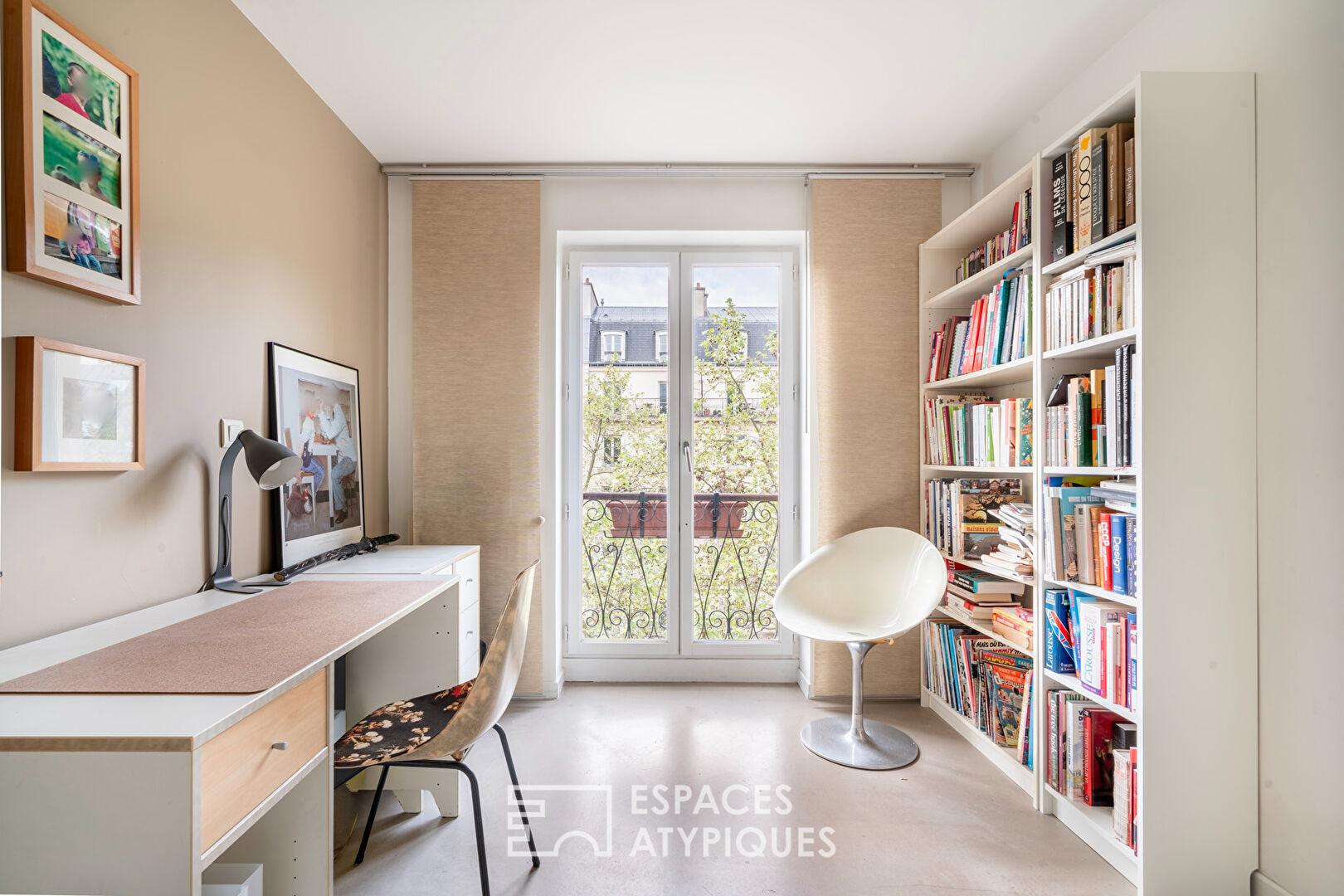 Les fenêtres offrent un tableau végétal apaisant sur les feuillages du boulevard, sans aucun vis-à-vis direct. Un espace bureau confortable et au calme complète ce niveau.