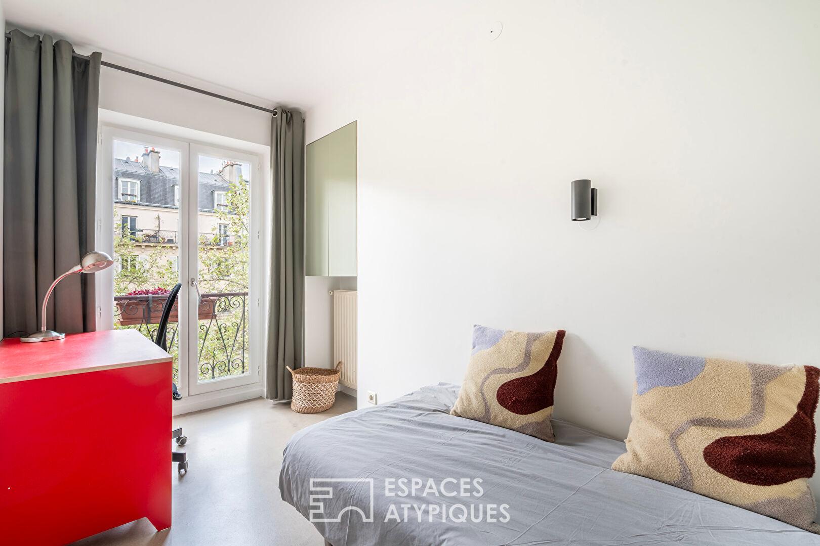 Situé Boulevard Voltaire, à quelques enjambées de la place de la Nation, ce duplex familial prend vie aux troisième et quatrième étages par escalier d’un bel immeuble haussmannien.