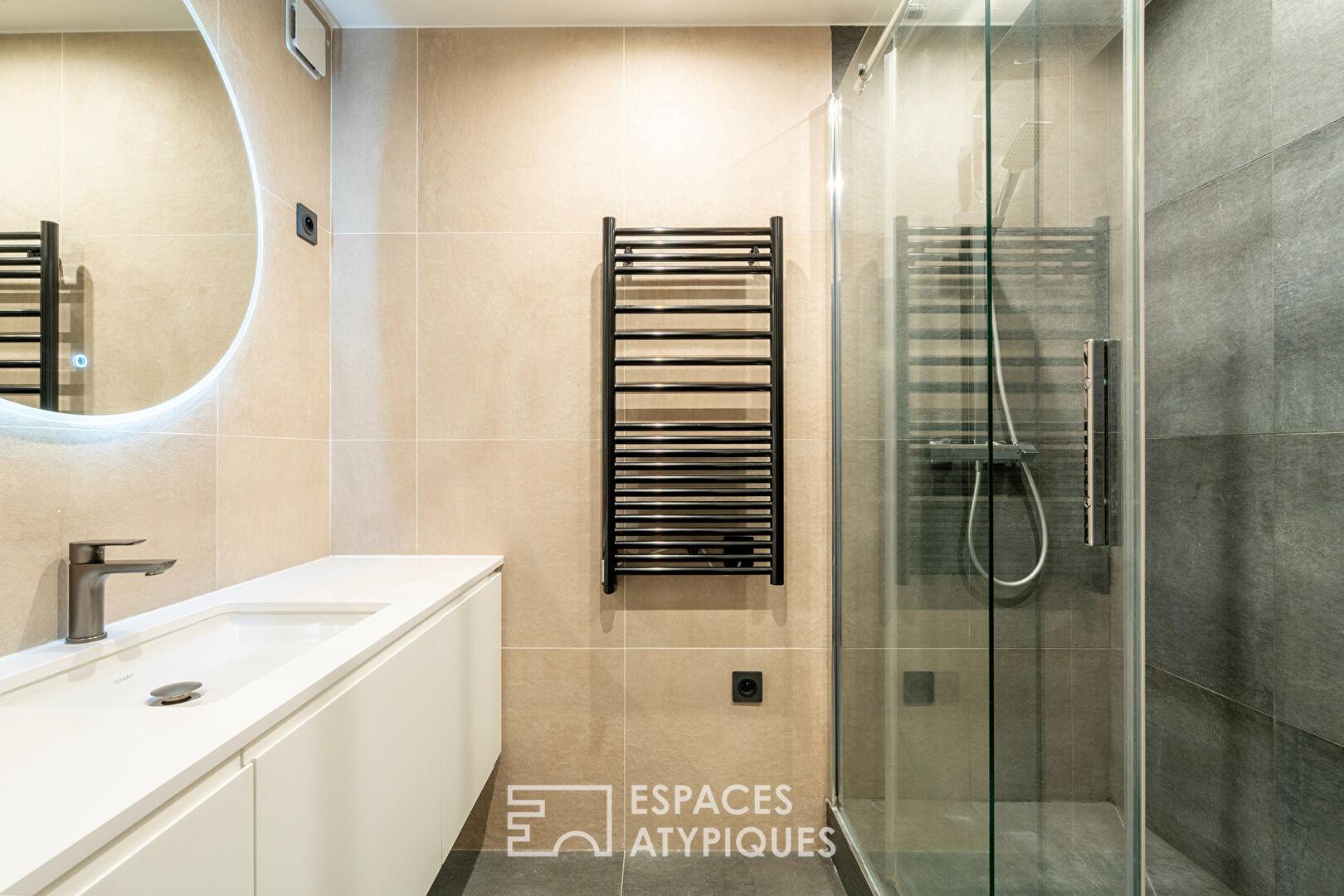 Situé au premier étage accessible par ascenseur, cet appartement à l’esprit loft a bénéficié d’une rénovation intégrale en 2020.
