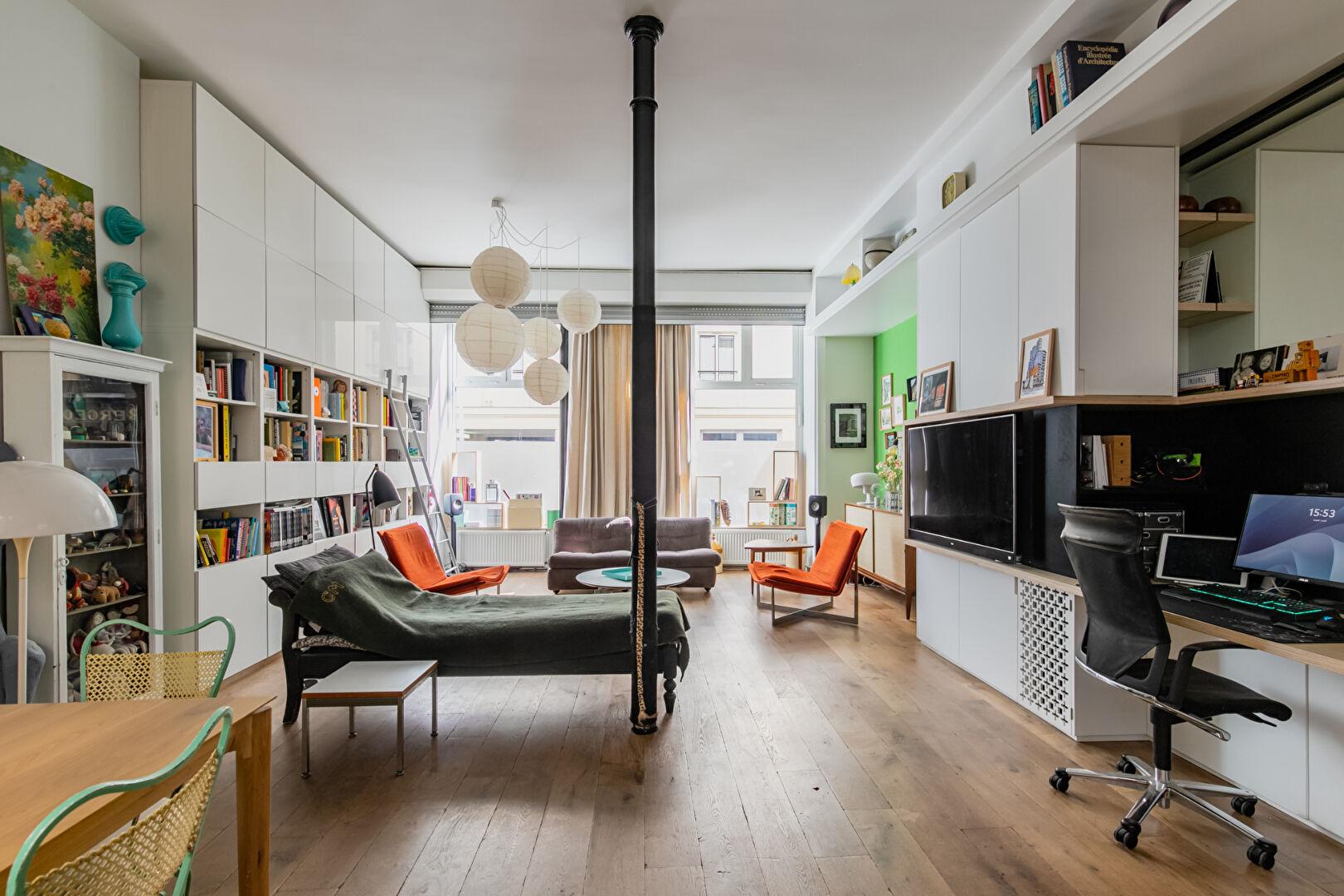 Un bien singulier, à la fois vivant et confidentiel où les volumes, la circulation fluide et la séparation des espaces permettent de conjuguer vie sociale et intimité sans compromis. Idéal pour les amateurs de lieux atypiques, les esprits créatifs ou ceux qui cherchent un refuge inspirant à quelques pas du quartier des archives.