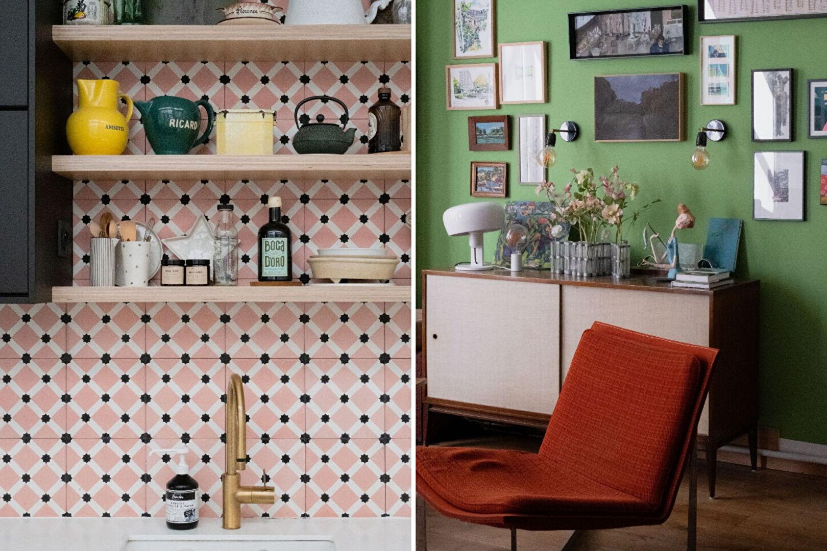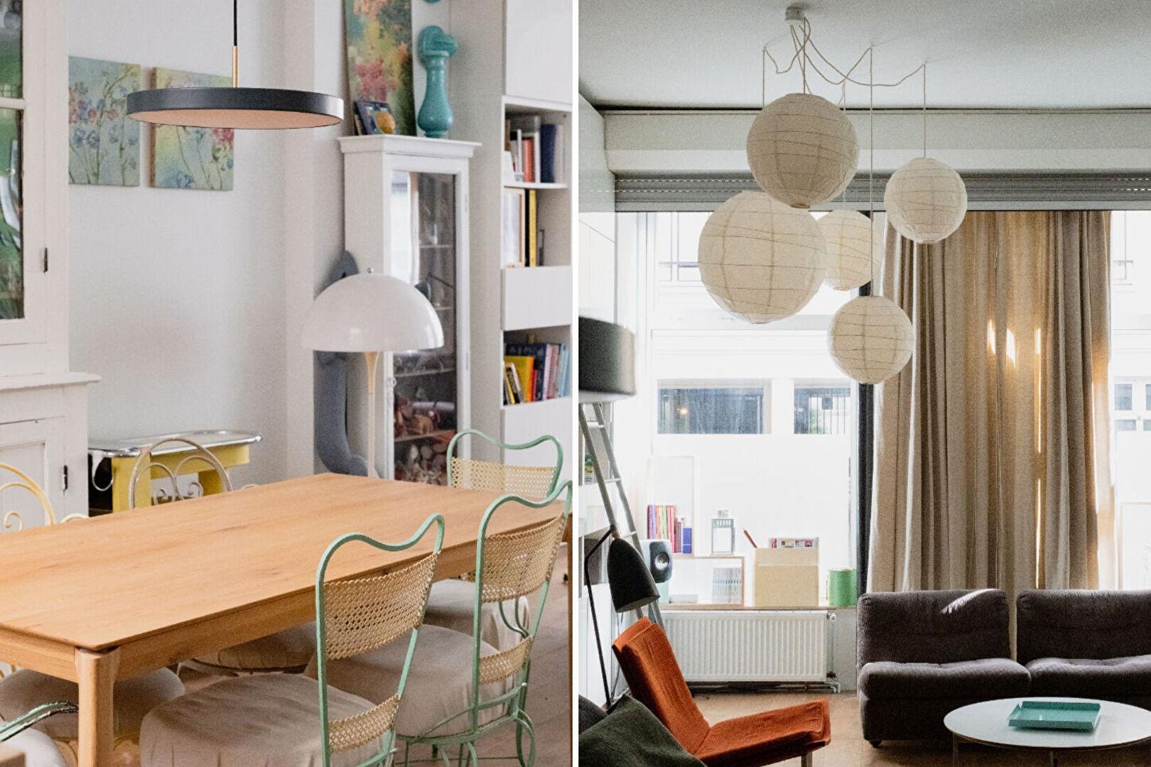 Dès l’entrée, la pièce de vie impressionne par ses proportions et son élégante linéarité. Sur près de 66 m², salon et cuisine dialoguent dans un esprit loft assumé, entre mobilier vintage chiné, pièces de design et touches artistiques qui rythment l’espace.