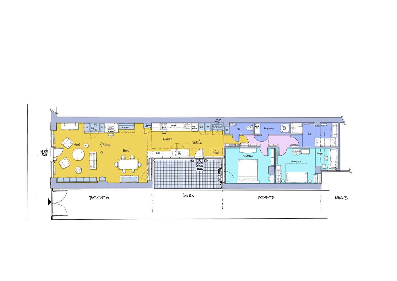 Au coeur de la rue Saint-Sébastien, entre les vibrations du Marais et l’esprit village d’Oberkampf, cette ancienne boutique-atelier de 118 ,04 m² Carrez déploie un volume rare, baigné d’une lumière douce filtrée par une vitrine confidentielle et une verrière type atelier et sublimé par une hauteur sous plafond de 3 mètres.