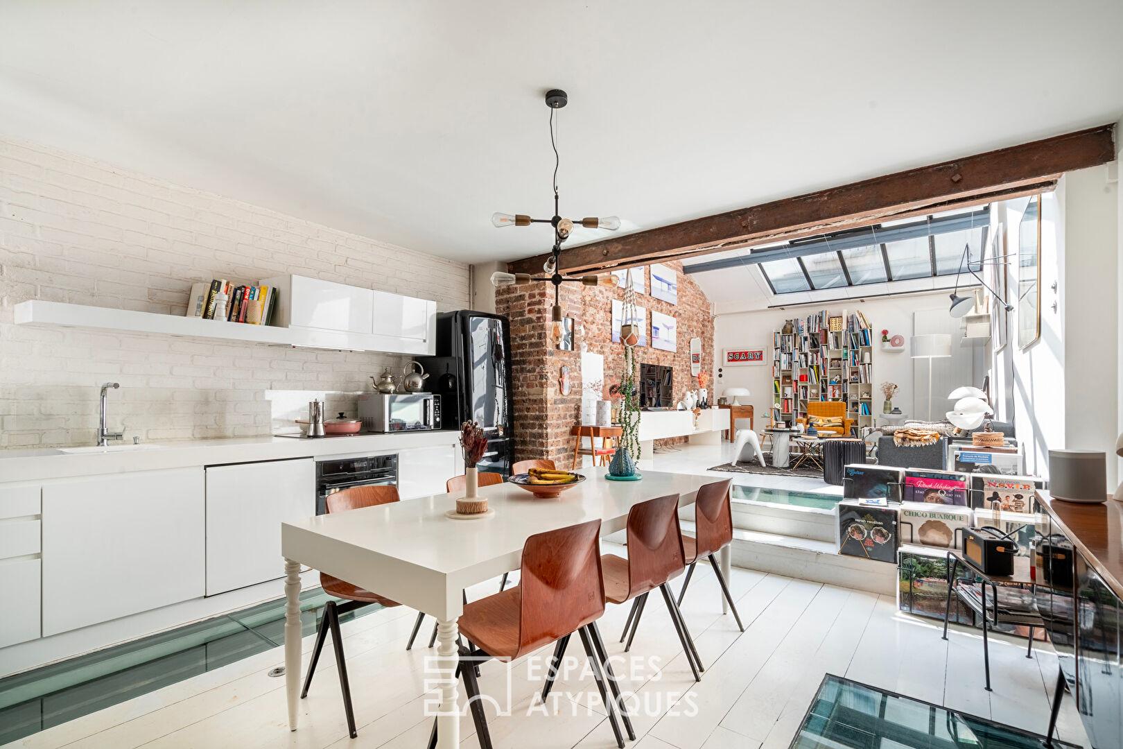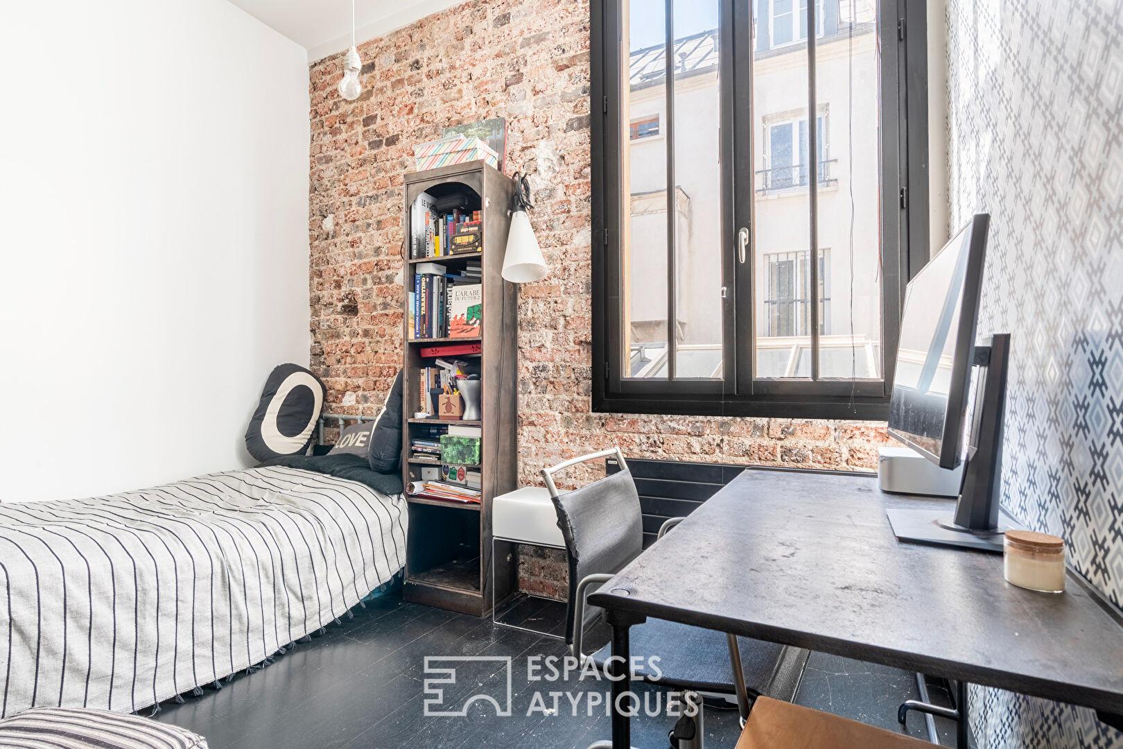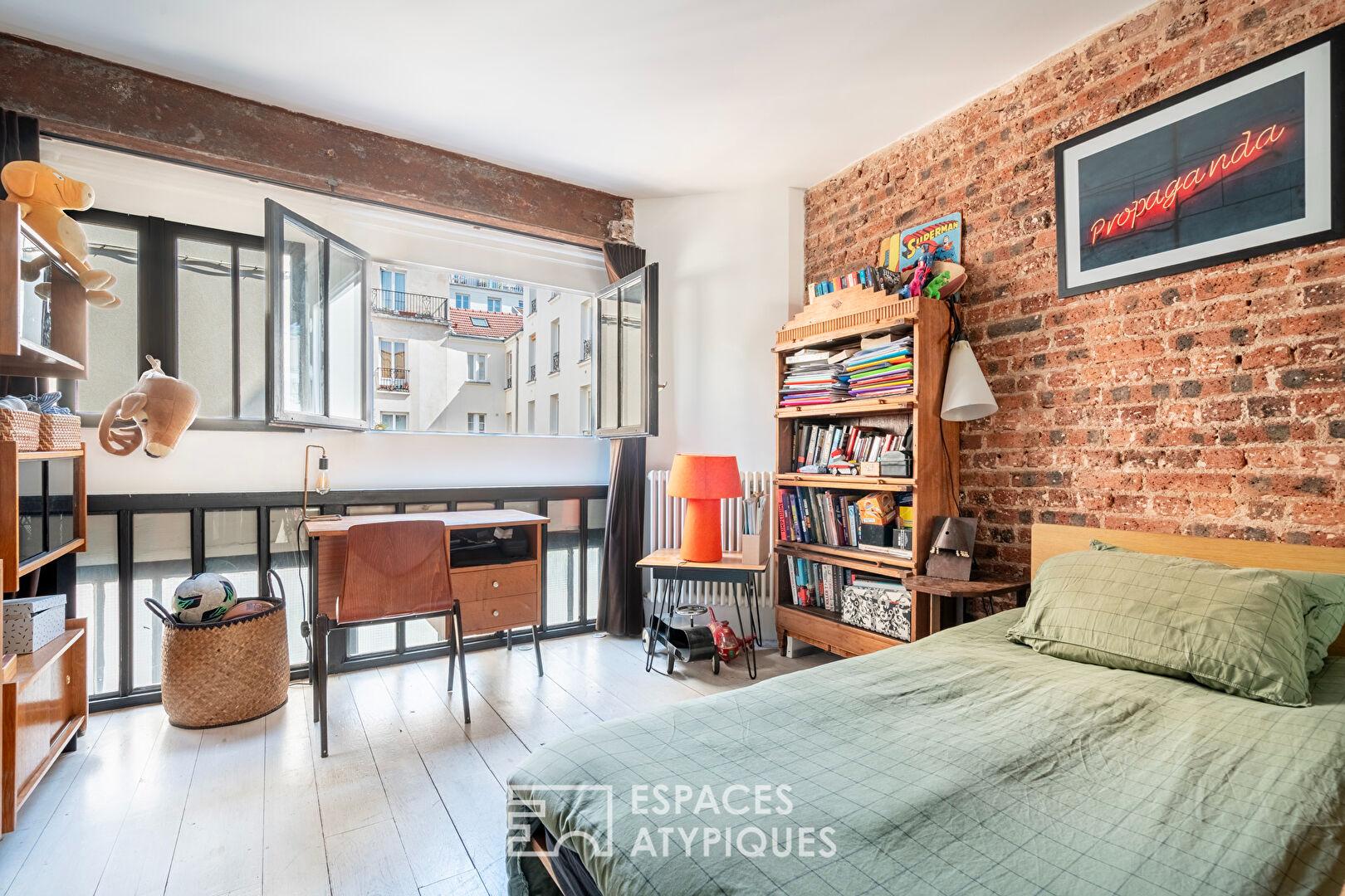 C’est au coeur du vibrant quartier de la Bastille, entre les rues de Charonne et de la Roquette, que se cache ce triplex singulier, fruit de la réhabilitation d’une ancienne manufacture de 1890.