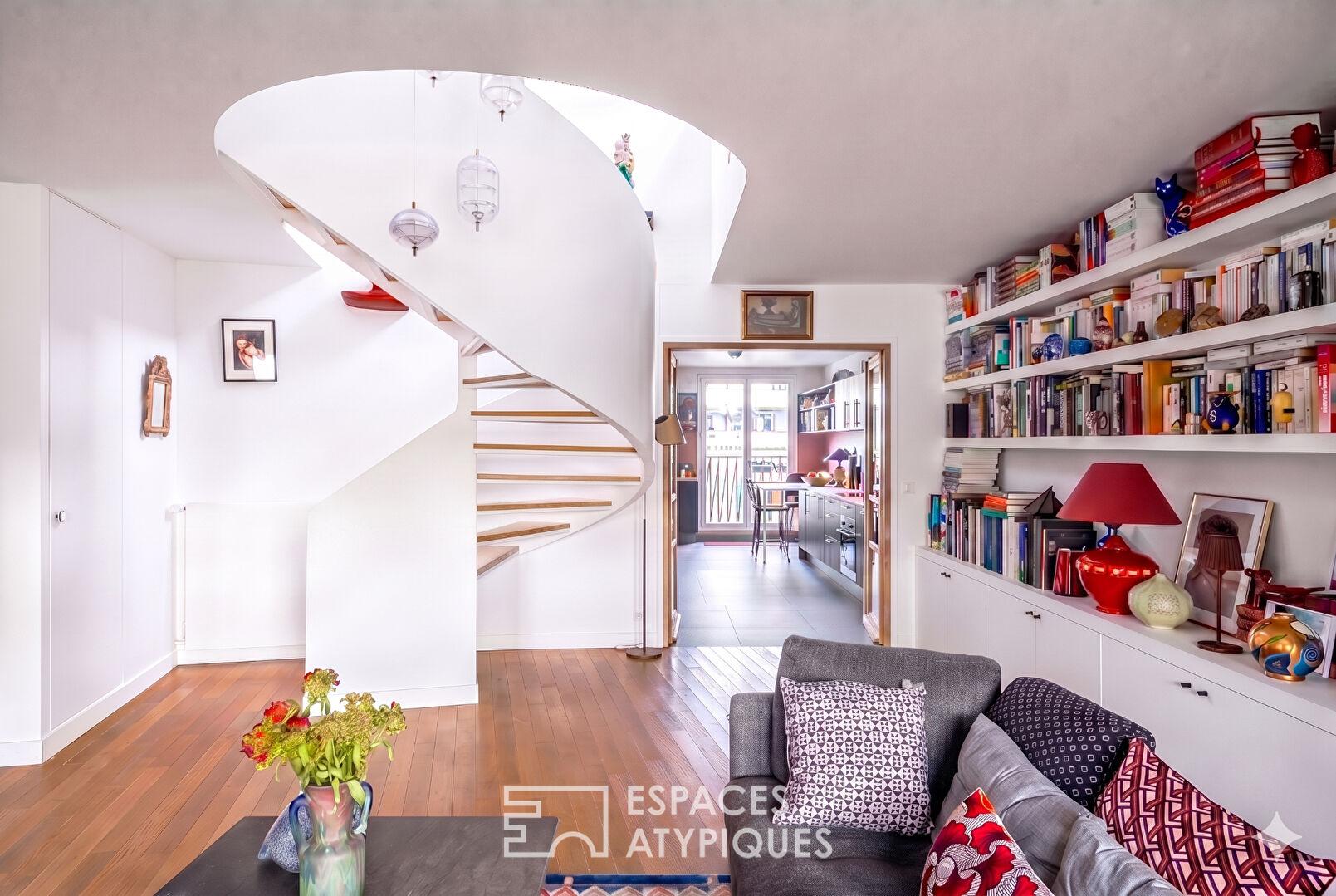 Ce duplex à l’élégance affirmée incarne parfaitement l’immobilier de prestige et l’esprit atypique. Un lieu de vie rare et inspirant qui saura séduire les acquéreurs en quête d’un havre de paix moderne et ultra-modulable.