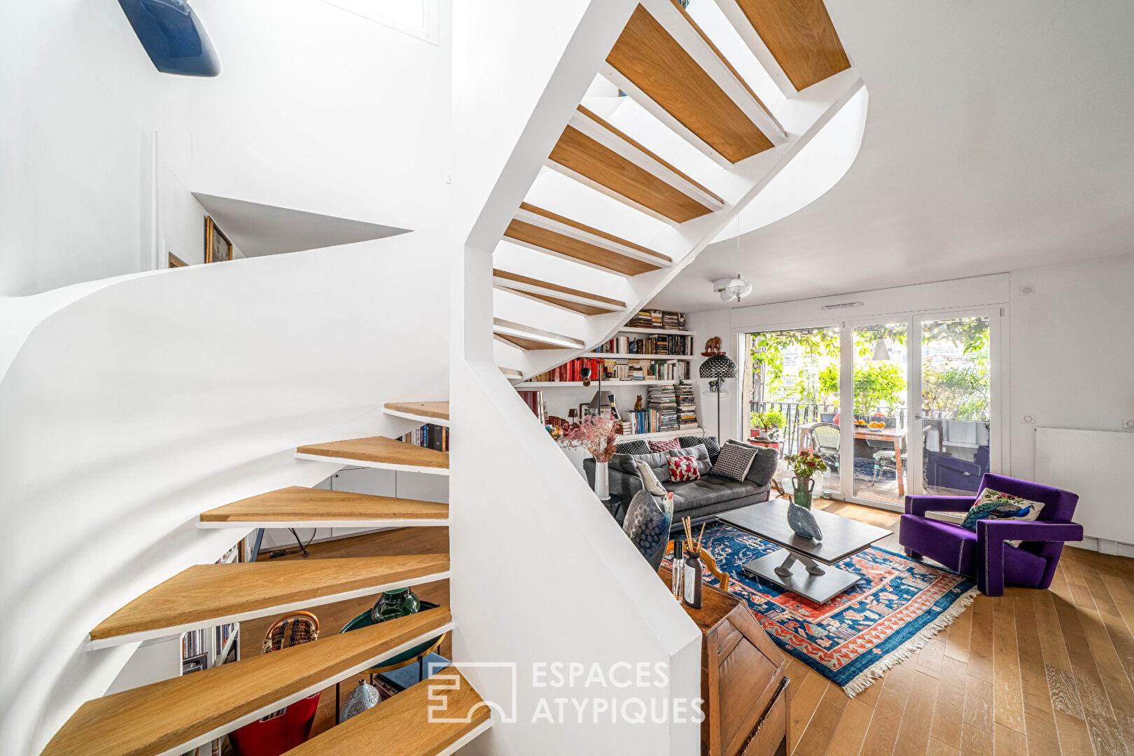 Duplex contemporain aux terrasses végétalisées, esprit canopée urbaine