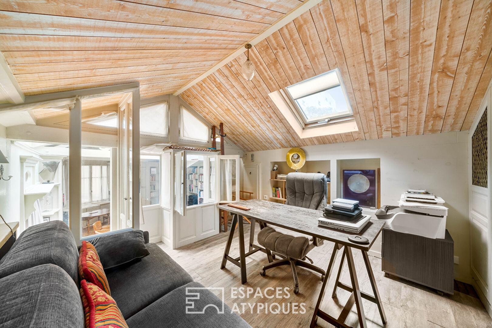 Située dans le quartier recherché de Mouton-Duvernet, au calme absolu et à l’abri des regards, cette maison d’artiste avec atelier développe une surface de 90 m² (84 m² Carrez). Ancien atelier de sculpteur, ce lieu singulier totalement réinventé propose un véritable univers où se mêlent calme, authenticité et caractère.