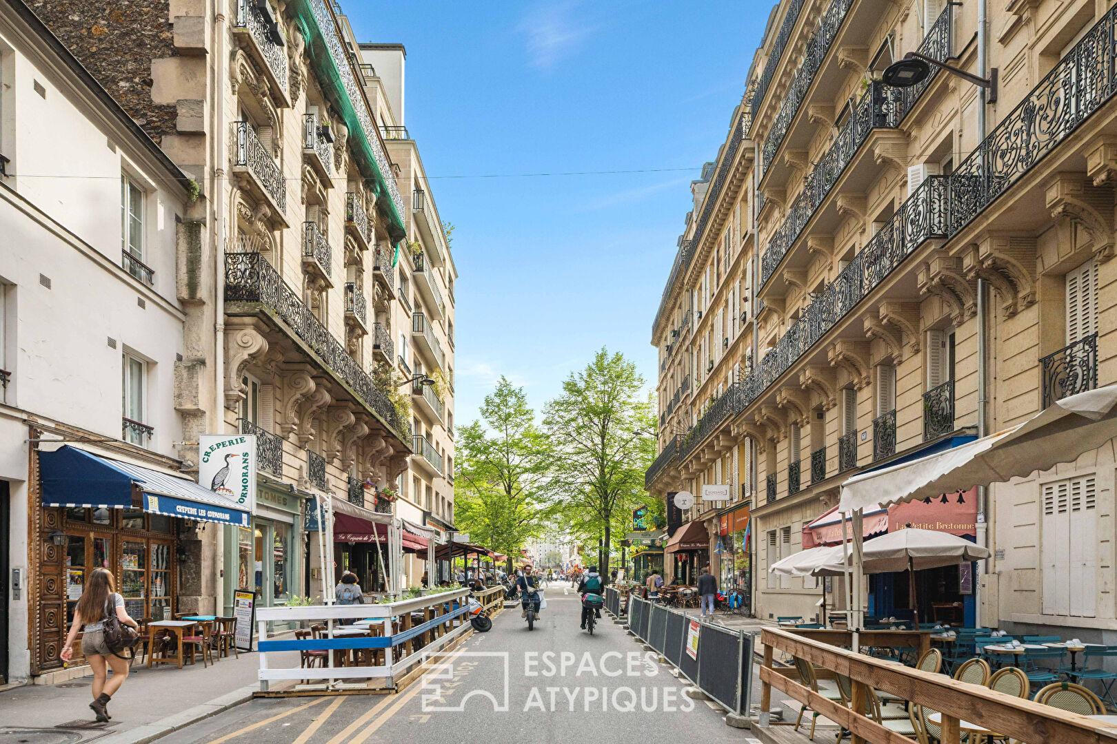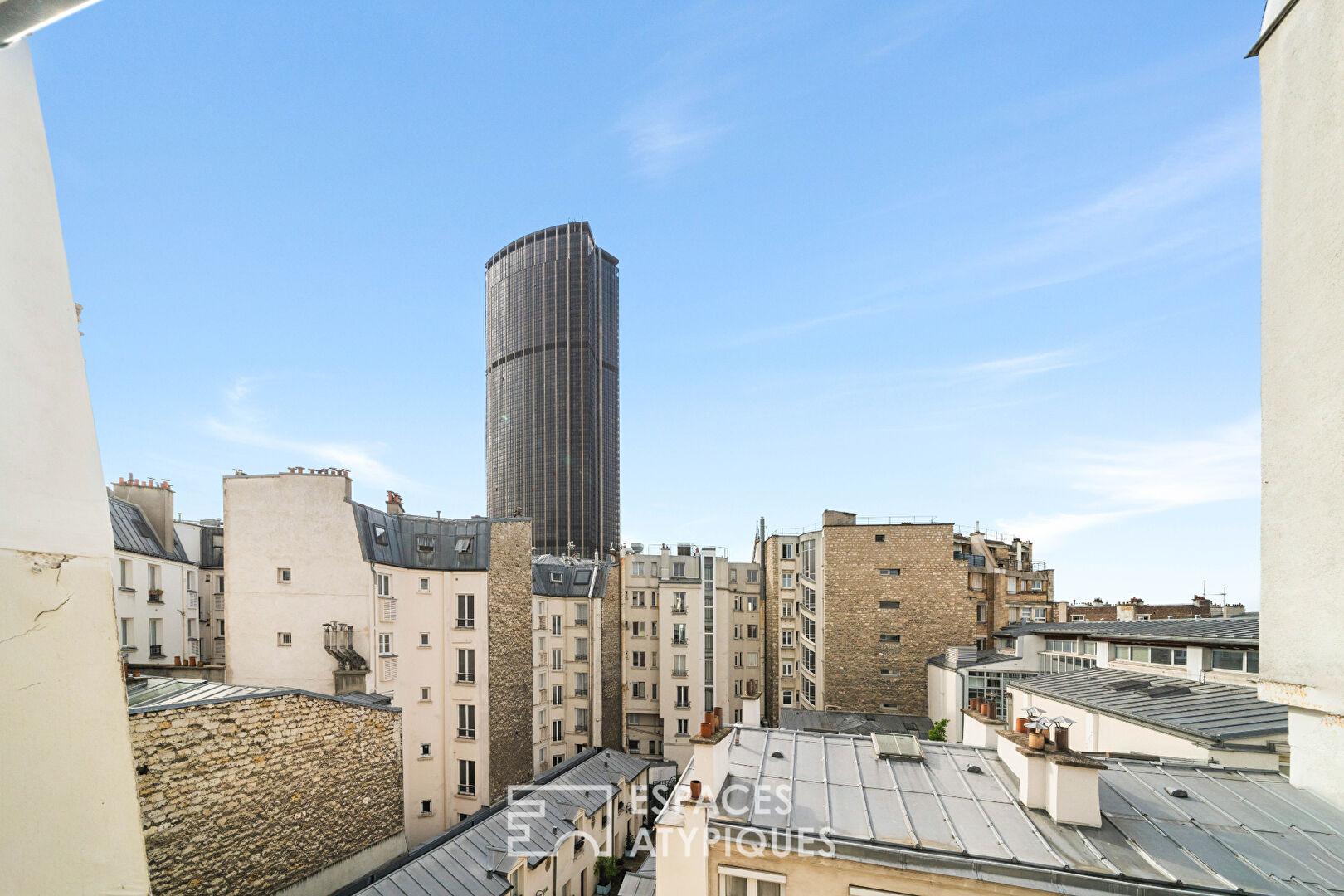 Situé en plein coeur du quartier Vavin/Edgard Quinet, au cinquième et dernier étage avec ascenceur d’un immeuble datant de 1750, cet appartement de caractère déploie tout le charme d’un mini-loft prenant place sous les toits. D’une surface pondérée de 50 m2 (41 m2 Carrez, 60 m2 au sol), il se caractérise par sa belle hauteur sous plafond, son authenticité, son aspect traversant et sa luminosité.