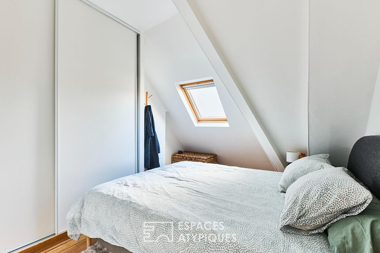La partie nuit dispose de trois chambres mansardées, accompagnées d’une salle d’eau ainsi que d’une salle de bains avec toilettes.