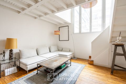 Niché au deuxième étage par ascenseur d’une très jolie et prestigieuse copropriété sécurisée, à proximité immédiate du Parc Monceau, cet atelier d’artiste en duplex développe une surface de 45,36 m2 (43,93 m2 Carrez).
