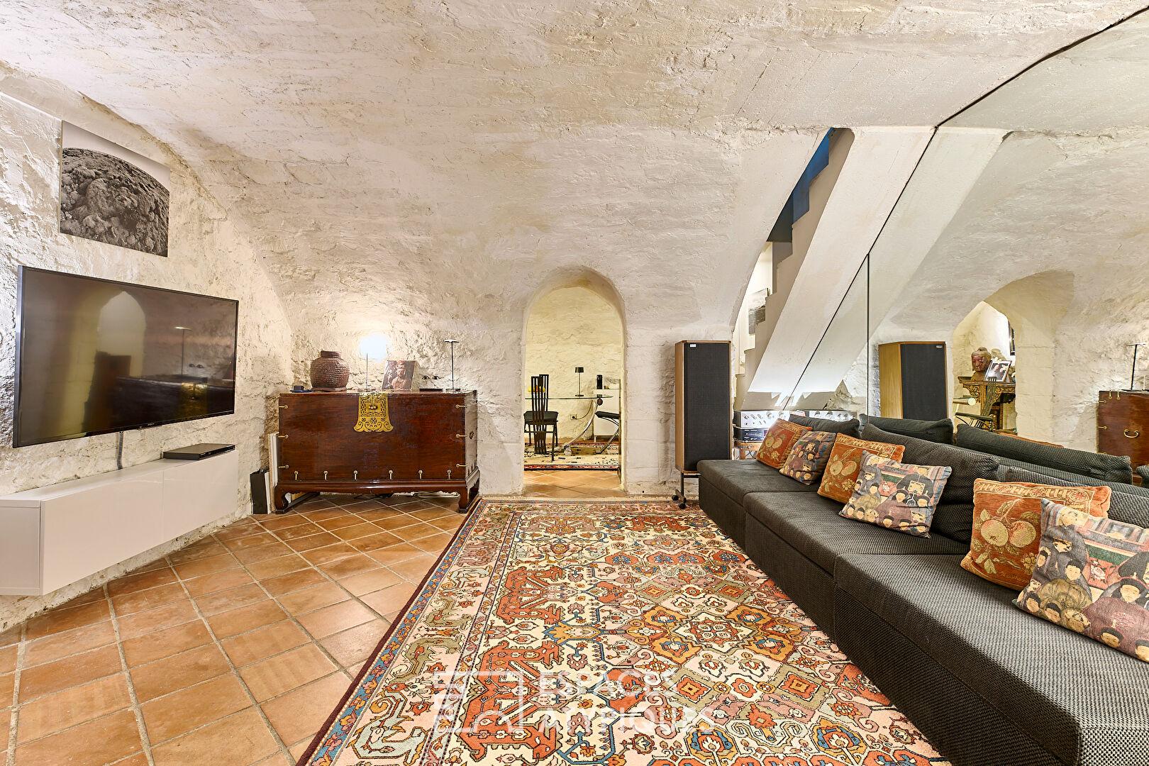 Le sous-sol, accessible depuis le salon, véritable atout de ce bien, s’étend sur 135 m2 et ouvre de multiples possibilités d’aménagements, que ce soit pour un espace de loisirs, un bureau, ou encore un atelier créatif, destiné à la musique, aux amateurs de son et d’image.