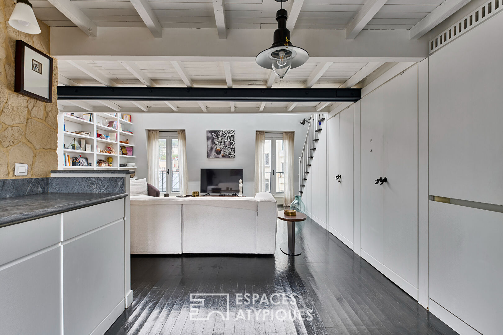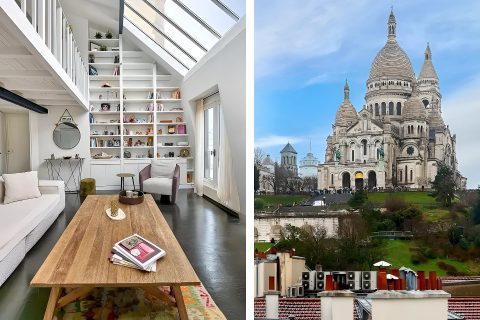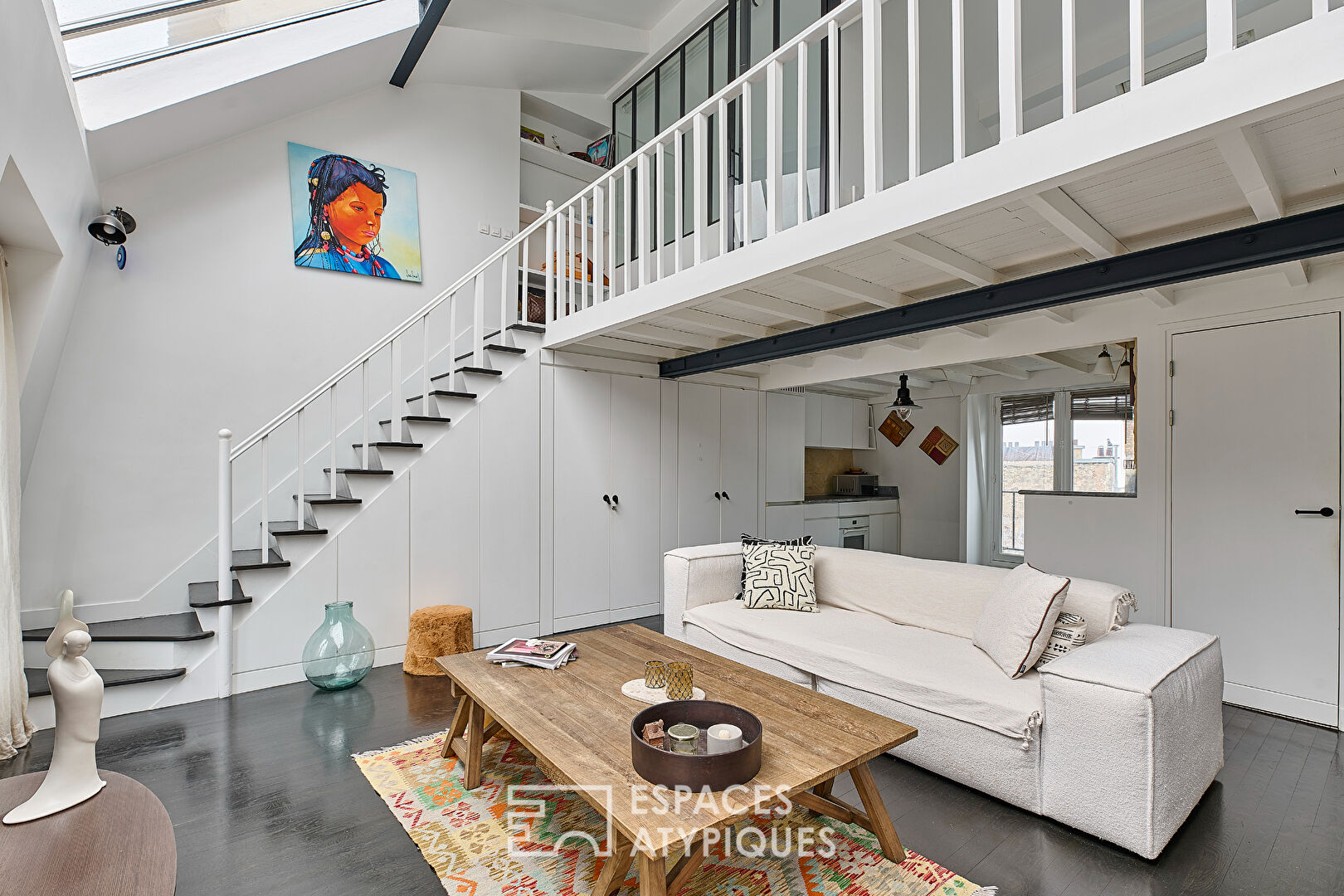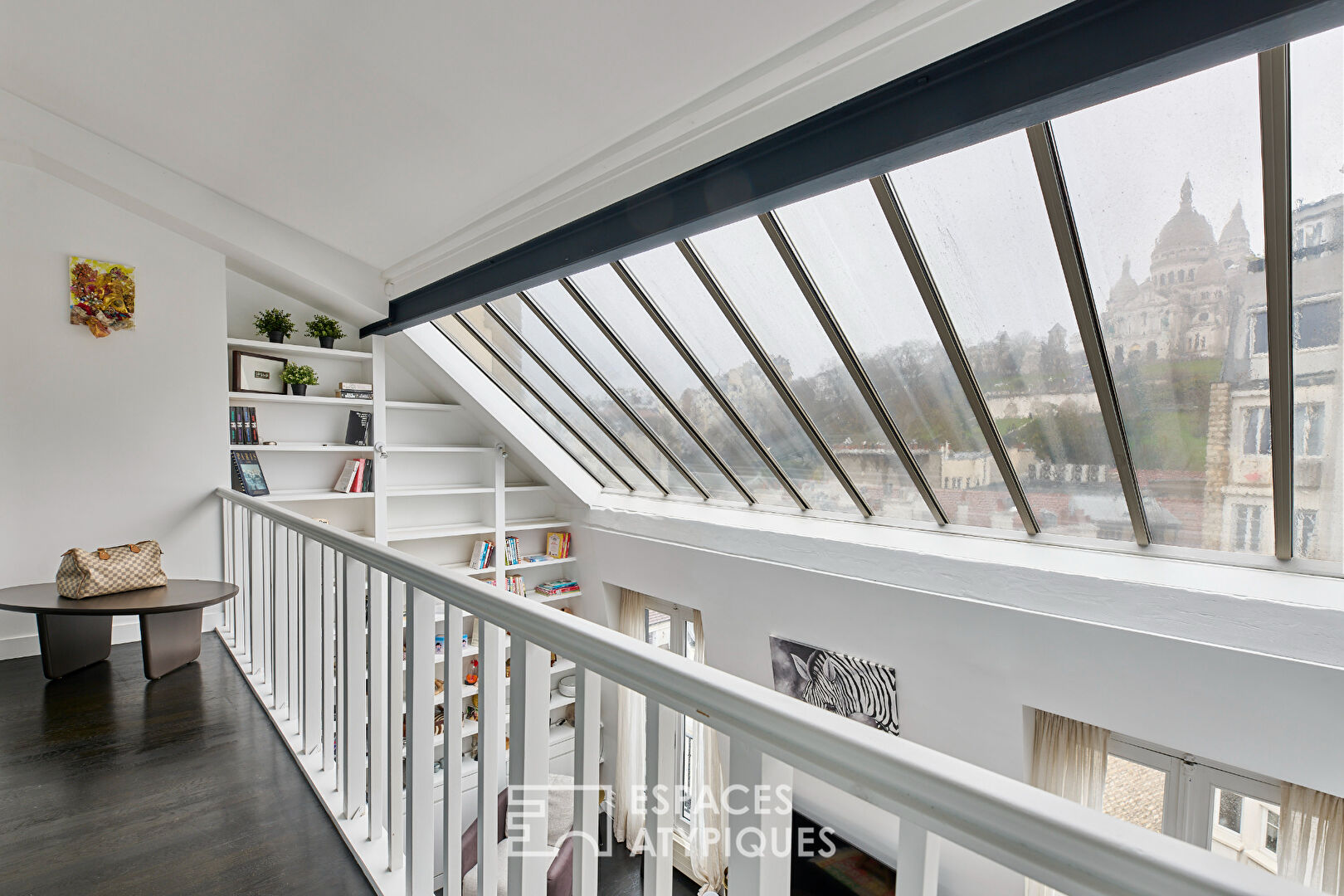 Ancien atelier d’artiste traversant en dernier étage avec vue Sacré Coeur
