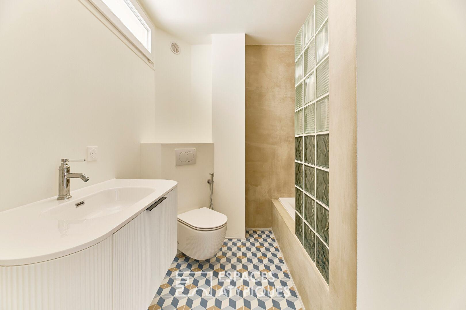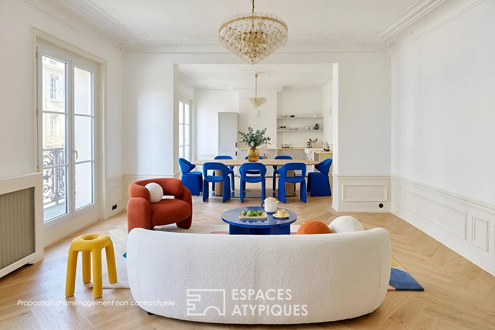 Traversant et modulable, ce lieu de vie aux volumes généreux (belle hauteur sous plafond) et aux prestations de qualité (parquet, moulures) satisfera les amoureux de l’ancien en quête d’une signature contemporaine affirmée.