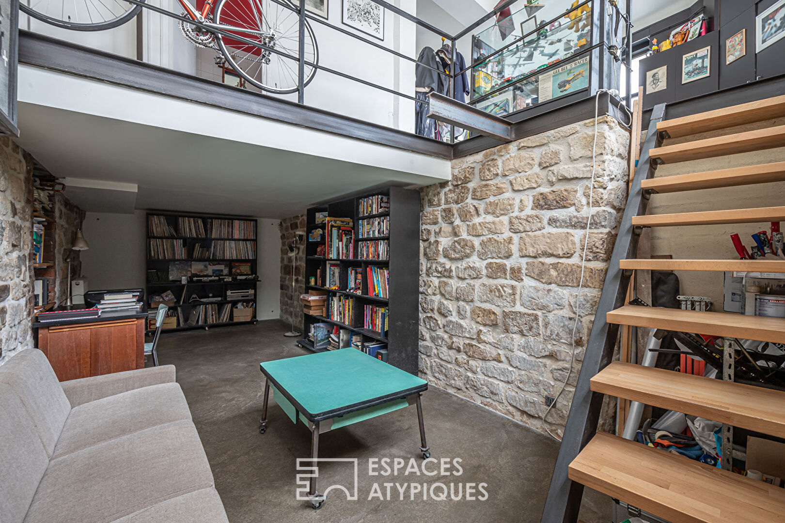 Les structures métalliques, les pierres apparentes et le béton ciré au sol témoignent du passé industriel de ce lieu d’habitation soumis au statut de la copropriété.