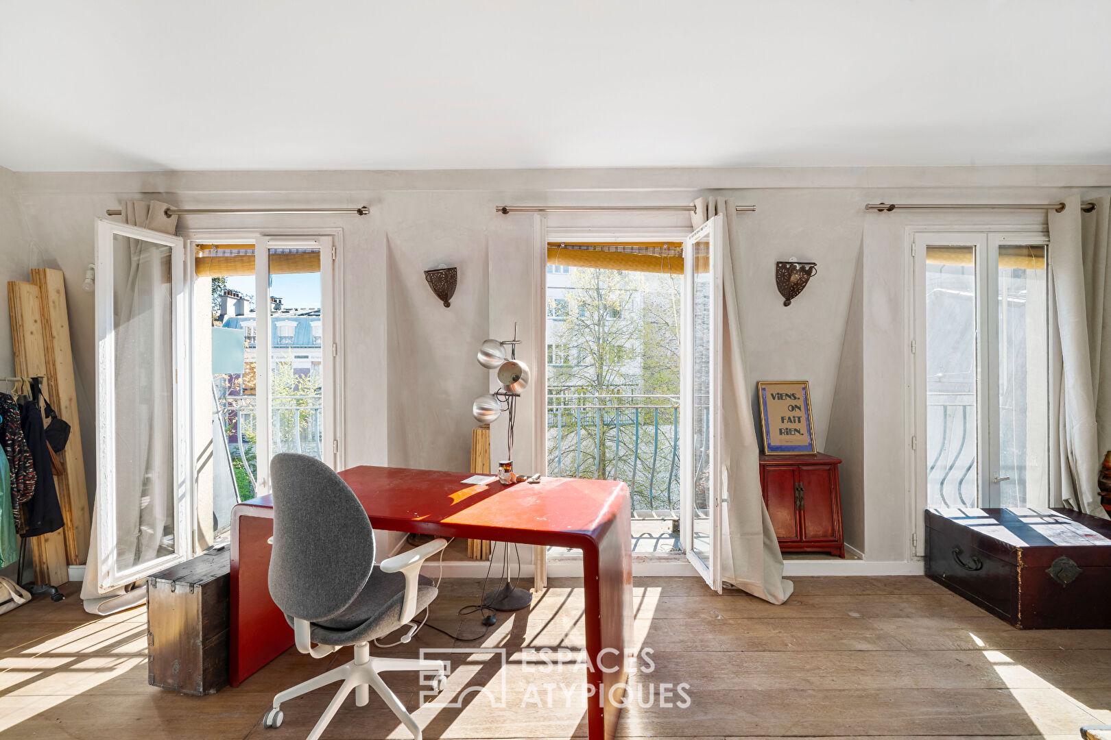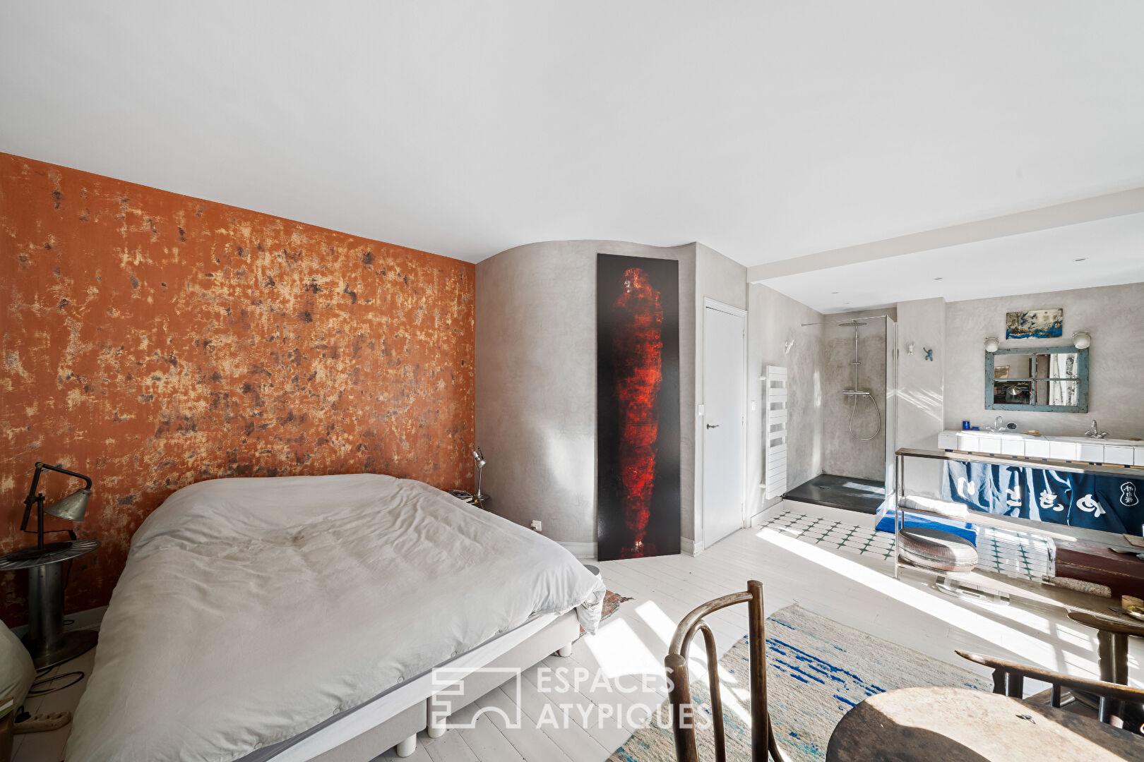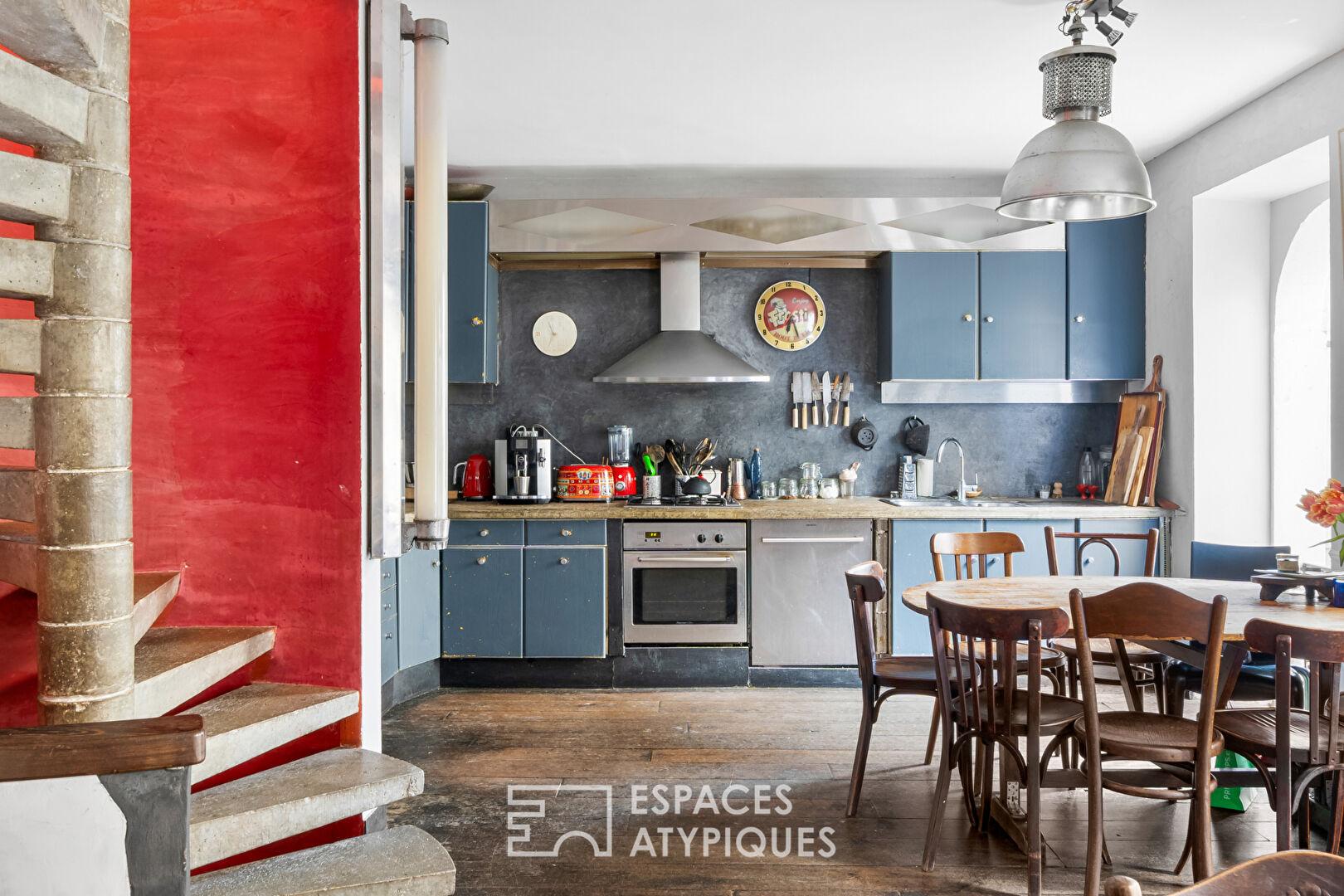 Ce refuge urbain, à la croisée du loft et de la maison de campagne, s’adresse aux amoureux d’histoire et de lieux de vie décalés.