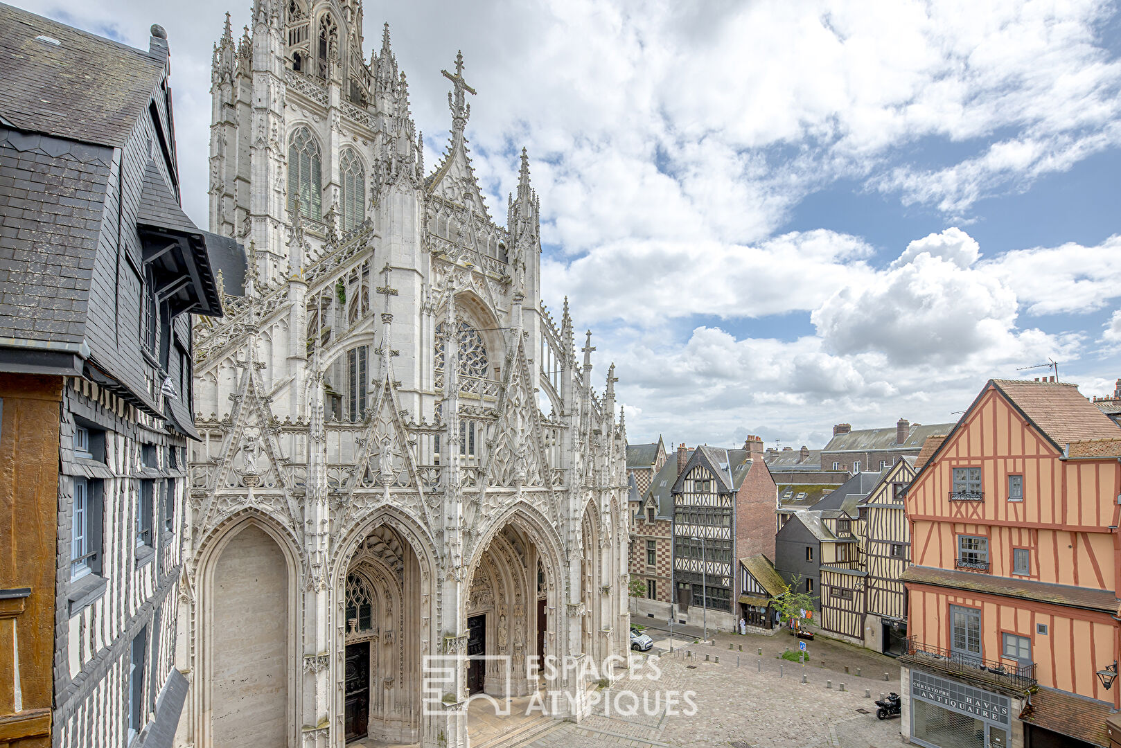Dès le seuil franchit, la distribution des pièces et les sept fenêtres donnant sur Saint-Maclou, invitent le visiteur à la contemplation, happé par la luminosité et cette vue quasi hypnotique.
