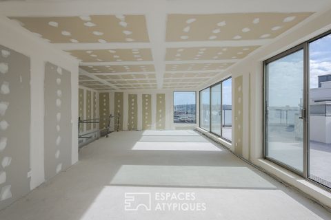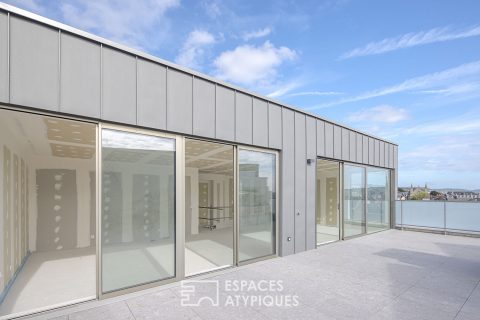 Le plateau supérieur de 60m², quant à lui, offre un espace confortable et donne accès à la terrasse spacieuse, où profiter de moments de détente en admirant la vue panoramique à 360° sur Rouen.