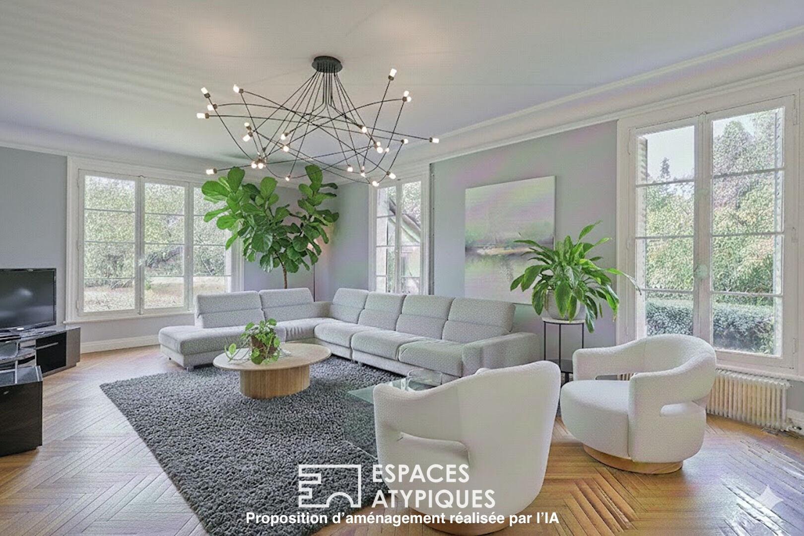 Dans son prolongement, une réception traversante de 55 m² constitue la pièce maitresse.