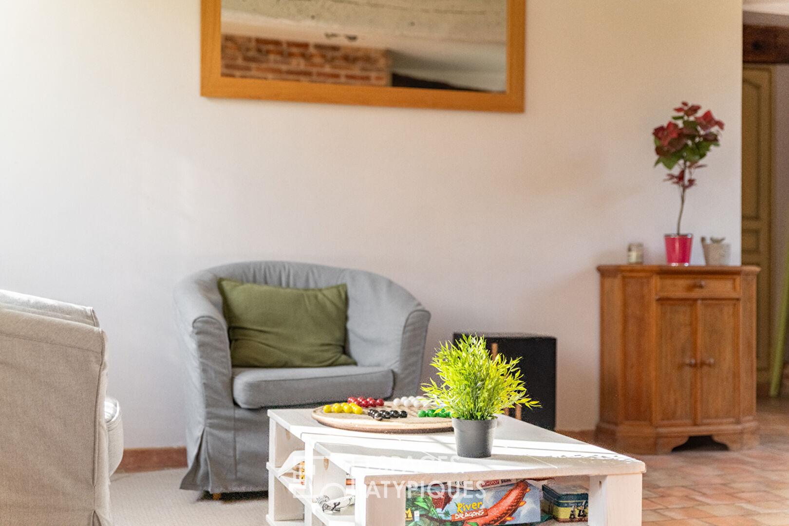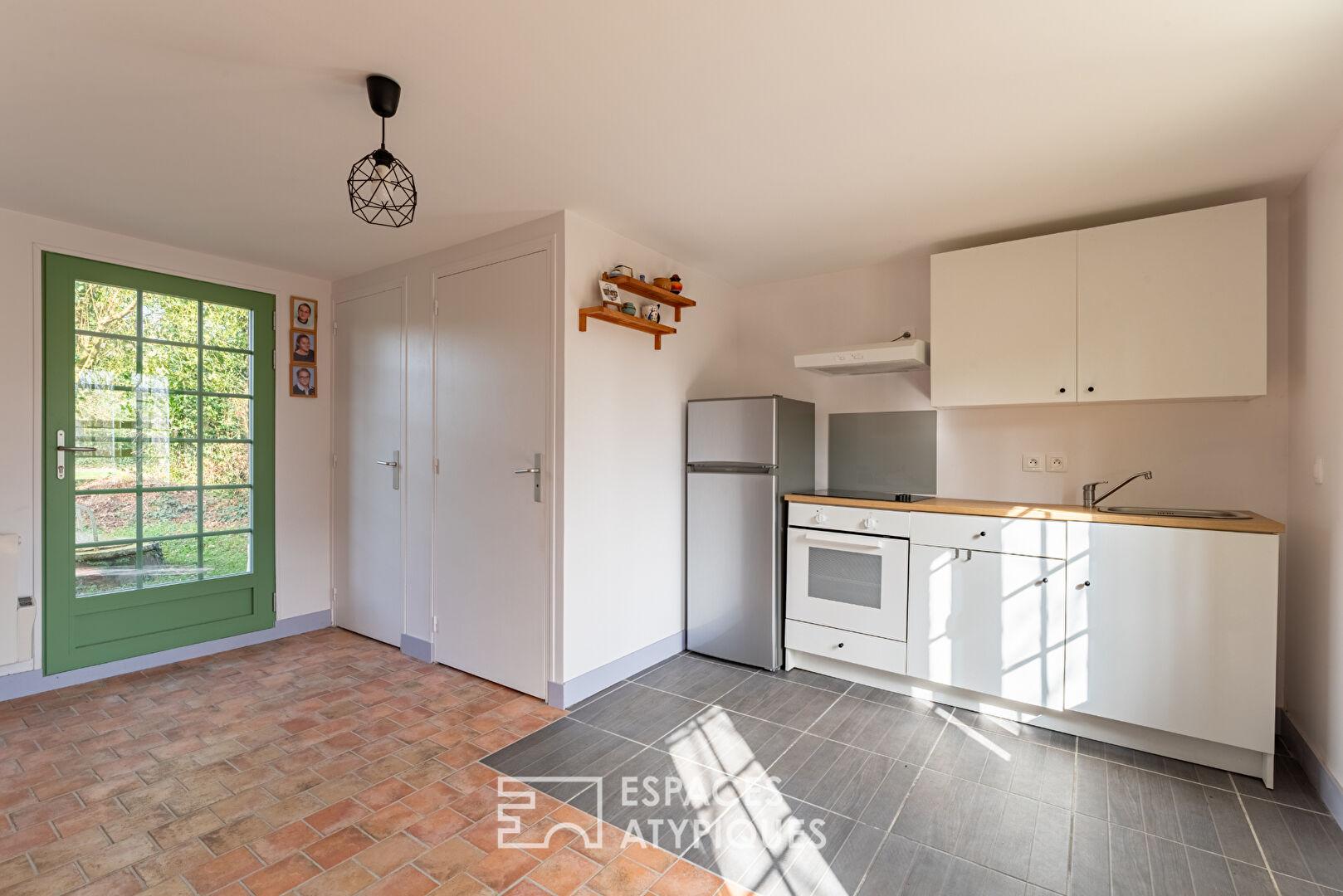 Attenante à la maison principale, une dépendance entièrement rénovée propose un espace de vie indépendant.